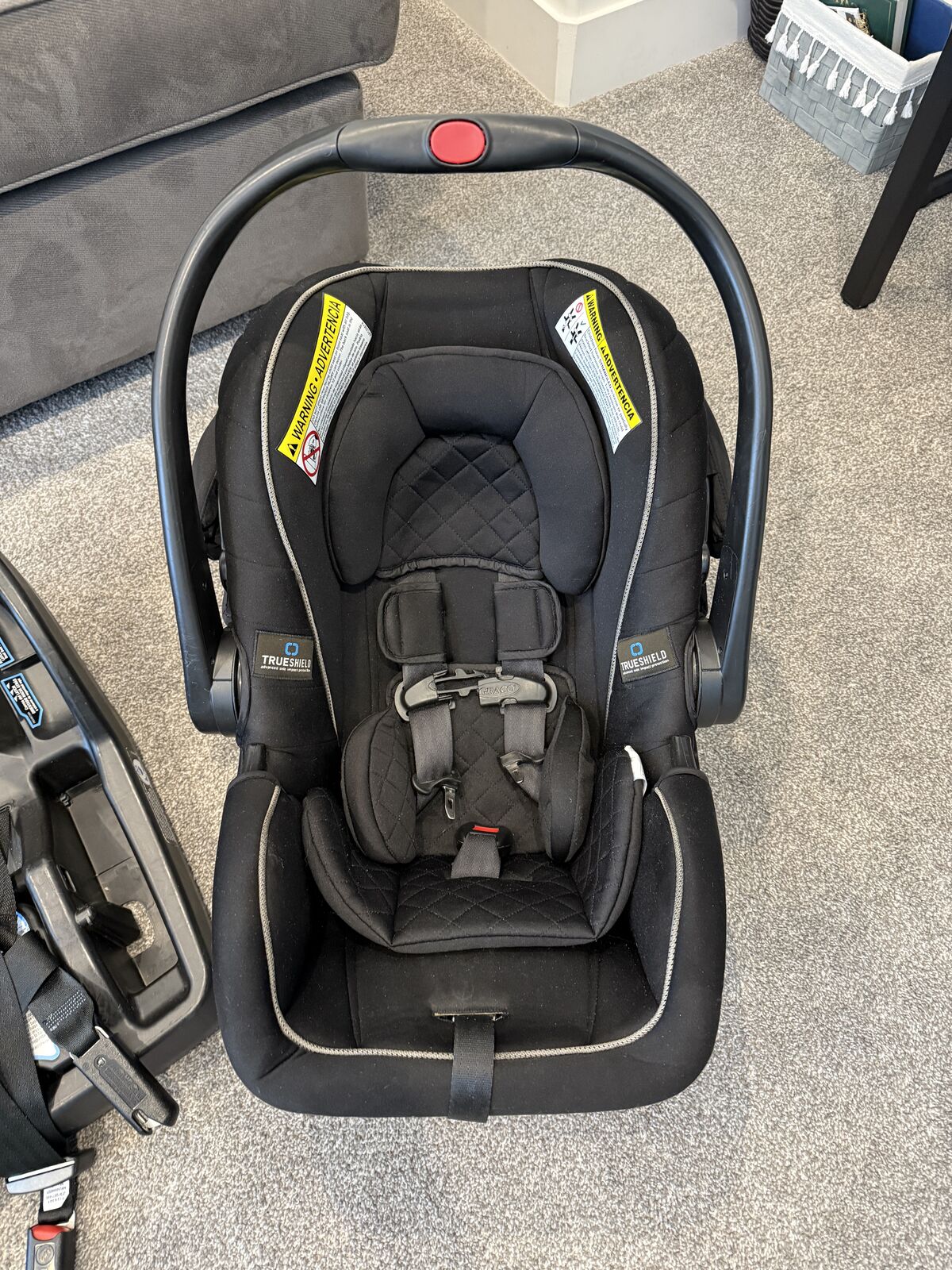 ApplePayThe car seat was manufactured in August 2021, and most car seats have a lifespan of 7-10 years from that date. It’s been in good hands and comes with the newborn inserts. We also have two bases included.