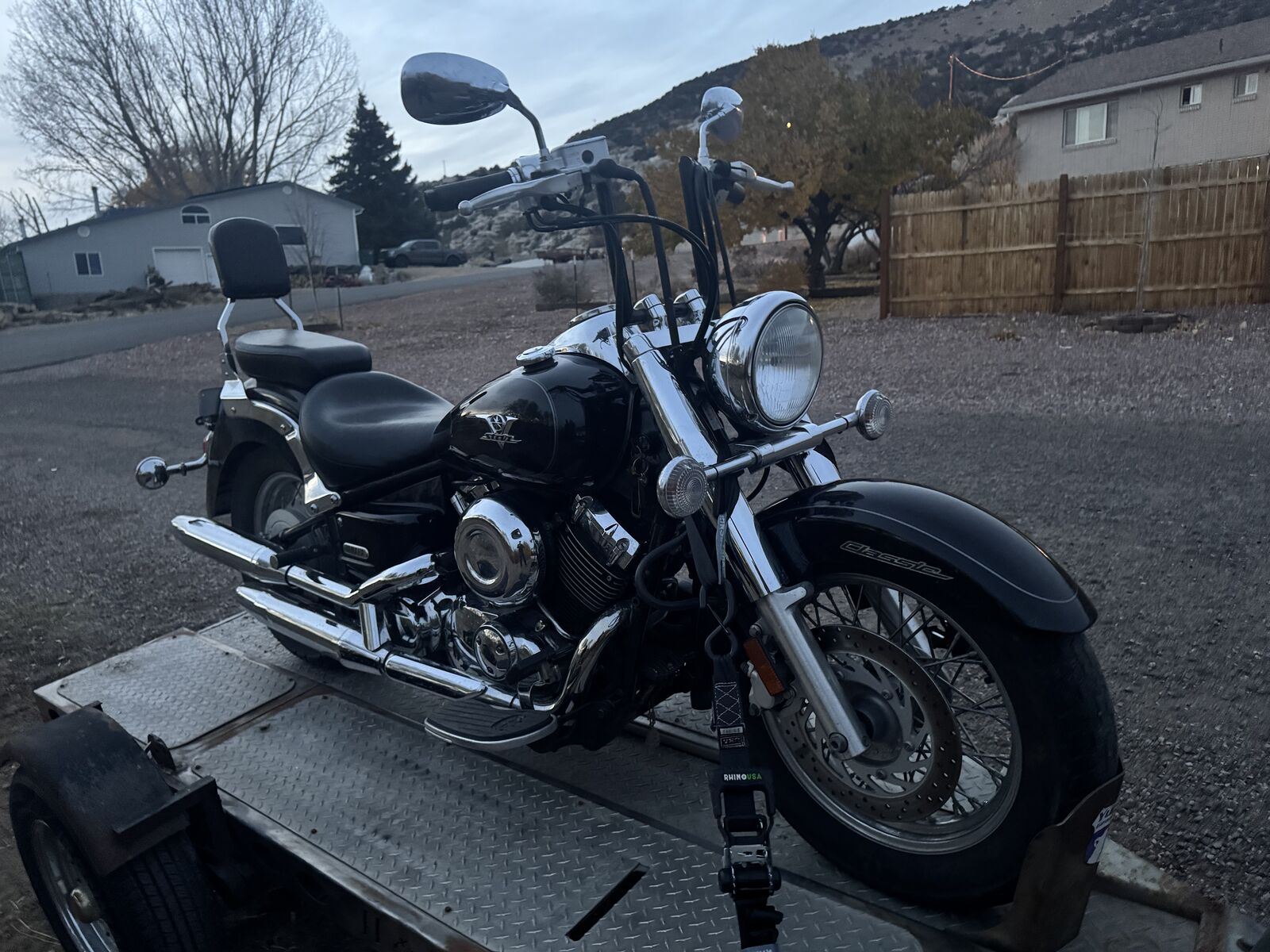 Great running 2005 VStar 650. Has10 inch mini apes, electric start and fun to ride. The front tire is cracking, but I purchased a new tire that will go with the bike. Clean title. Looking for trades towards a car trailer, sxs trailer, dirt bike, mountain bike, road bike or ??? We are nearing retirement and thinning down the street bikes. Text messages are prefered at 435-823-3284.