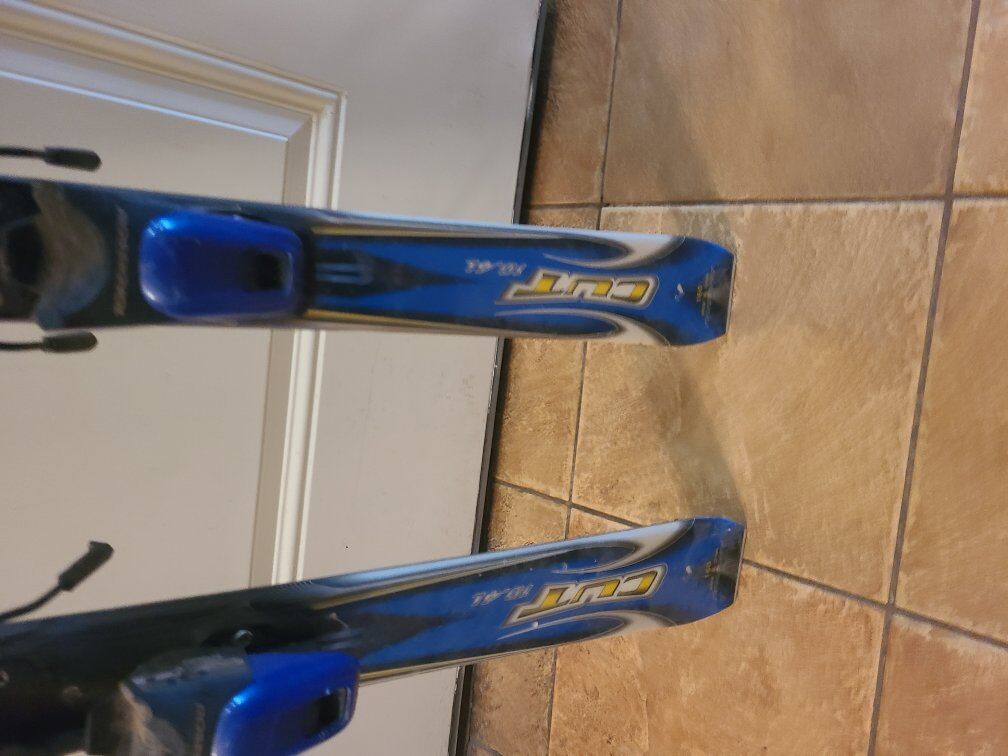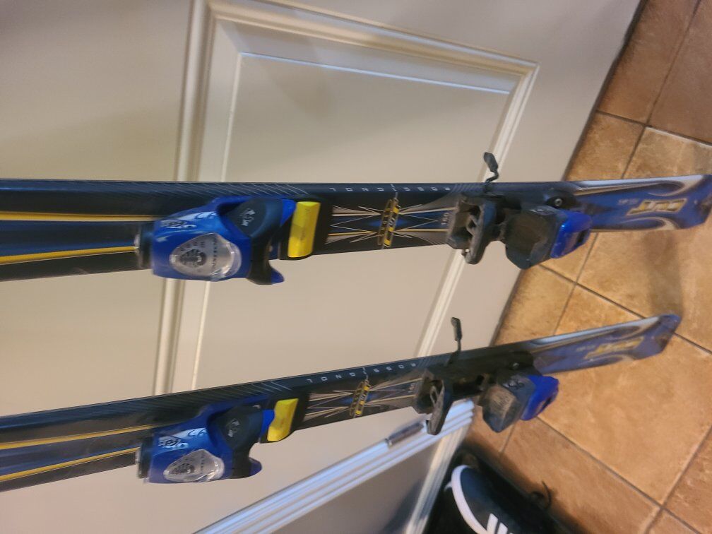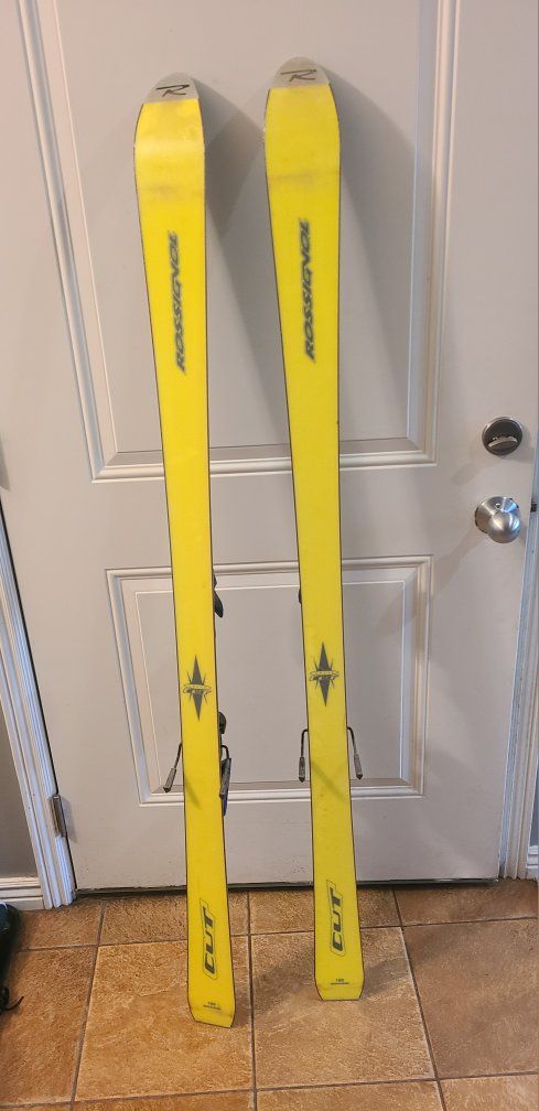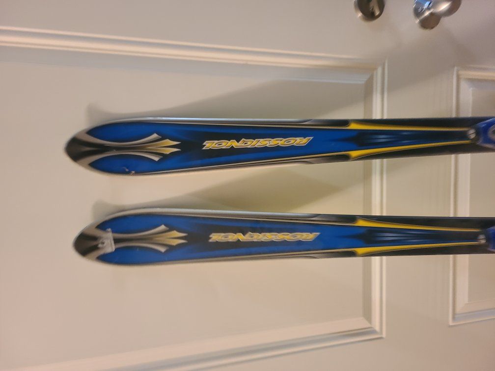 160cm Rossignol cut skis with adjustable bindings.
