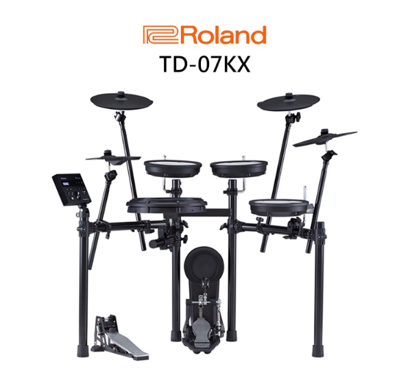 For drumming without limits, the TD-07KX offers larger pads and the highest cymbal count in Roland’s TD-07 V-Drums series—giving great value and extended creative capabilities. The 12-inch PDX-12 snare and 8-inch PDX-8 toms provide the platform to push your drum technique, backed by the unbeatable response of our original ultra-quiet, double-ply mesh heads. Meanwhile, a total of three CY-8 cymbals plus a dedicated kick pad enable new levels of expression. With the foundation of the powerful TD-07 sound module, the TD-07KX goes far beyond traditional drums, offering authentic drum kits across a vast range of styles and genres, plus deep tone editing to customize them. There’s also a Coach function for building skills, Bluetooth® connectivity with smartphones, tablets, and computers for streaming audio to the sound module, and a one-cable USB connection for recording in computer-based music production software. Authentic V-Drums PerformanceFor more than twenty years, Roland V-Drums breakthrough mesh head V-Drums have established them as the leading name in electronic drums. V-Drums offer you an incredibly lifelike recreation of a traditional acoustic kit in an electronic format, along with technology and features not found anywhere else. Now, the TD-07KX continues this legacy, adding larger snare and tom pads and a second crash cymbal over the entry-level TD-07 series kits, expanding your sonic palette and playing options. Sound as Real as It GetsAt the heart of any great electronic drum set is a powerful, fast-processing sound module—and the TD-07 is the perfect match for the upgraded hardware of your TD-07KX kit. Take your pick from a library of acoustic drums, electronic drums, and percussion types, all captured in precise detail in top recording studios and brought to life with advanced V-Drums technologies to react just like acoustic instruments when you play them. Start Drumming in Seconds—or Go DeeperSetting up in seconds and packed with ready-to-play preset kits, the TD-07 module is always ready for an impromptu session. But when you’re ready to explore, a vast drum library awaits within. Test-drive snares and toms, max out kick drums, or set the size of your crashes and rides. Then go further by tuning the drums, adding damping, and changing how the kit sounds when played in a variety of physical spaces. For the final touch, tweak the module’s individual EQs to shape the drums to your musical situation, just like a sound engineer would. As Quiet—Or as Loud—as You LikeAcoustic drum kits are unavoidably loud, and even lesser electronic kits can be impractical due to the contact noise of sticks on pads. But thanks to Roland’s decades of research and development, the TD-07KX is designed to be much quieter. Hit our mesh heads as hard as you like and enjoy authentic stick rebound with minimal pad noise. Trust in the kick pad’s special damping to cut noise and vibration while retaining a satisfying, natural feel. Even the stand is designed and constructed to reduce vibration and noise transfer to the floor, and there’s a range of optional products available if further noise-banishing is needed. Acoustic Tone That Feels AliveStrike the pads of some digital kits and you’ll hear a series of static drum tones with none of the dynamic response that makes playing an acoustic drum so satisfying. The TD-07KX’s pads and cymbals are a different class, working with the module to provide a rich and reactive array of tonal colors that truly reflect your drumming. With their larger playing surfaces, the TD-07KX’s drum and cymbal pads have advanced precision sensors, capturing every hit, stroke, roll, flam, cymbal choke and ghost note, then relaying them with latency-free accuracy. Even better, this technology never gets in the way of the music—so just sit back, start playing, and let the magic happen. Roland’s Industry-Standard Mesh Head PadsRoland changed electronic drums forever with the launch of the world’s first mesh drumheads in 1997, and we’ve been sharpening our technology ever since. Our unique double-layer mesh design offers natural stick resistance and rebound that evokes your favorite acoustic kit, along with the ability to adjust the head’s tension using a standard drum key. Roland pads are known for their hugely satisfying playing feel and sensing speed. A Stand and Hardware That Works as Hard as You DoStream and Jam with Your Favorite Songs Using BluetoothSpice Up Your Drum Sessions with 40 Free Lessons from MelodicsTighten Up Your Drumming—with Visible Results Record to a Computer via USB