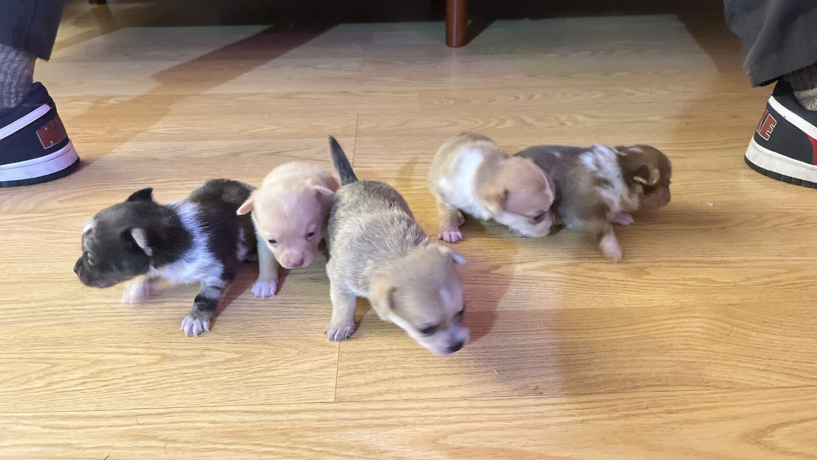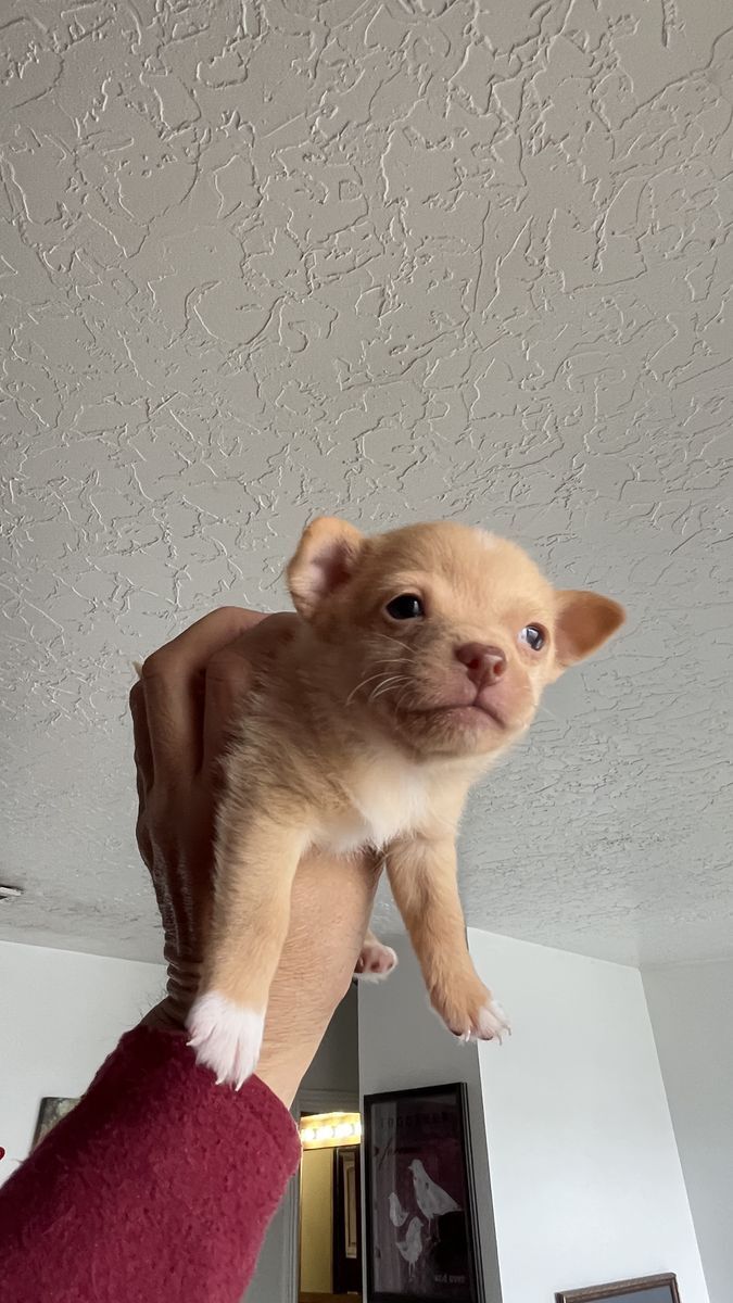 ApplePayPomchi puppies born January 22. 2nd generation, raised in our home with both parents on site (both under 7 lbs). Currently 5 weeks old and will be ready at 8 weeks beginning mid-March or later. First vet check, first vaccinations, and deworming included. Expected adult weight approximately 5–7 lbs. Rehoming fee $900. $300 deposit to reserve. Serious inquiries only.