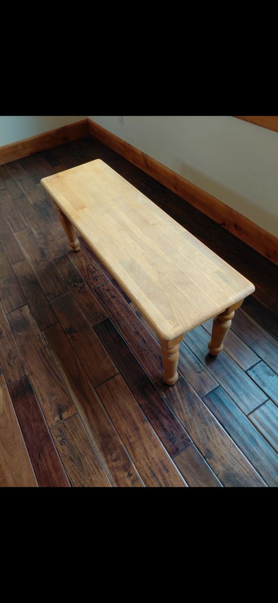 VenmoSolid wood bench. In good condition. Finish is a bit worn. 46" x 14". 19" height. $70.00. Call or text 801-696-7790.