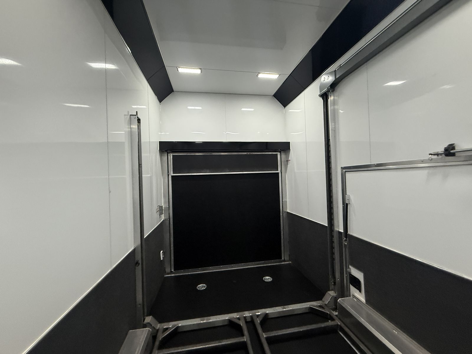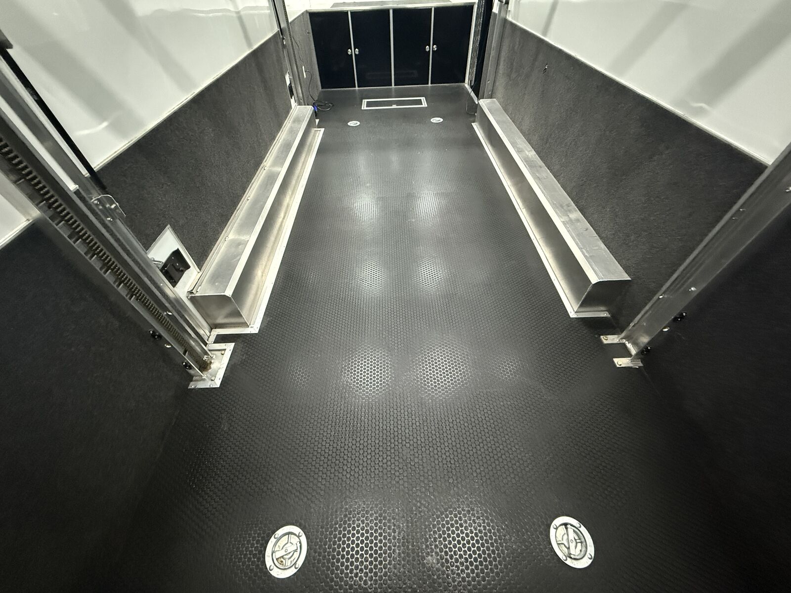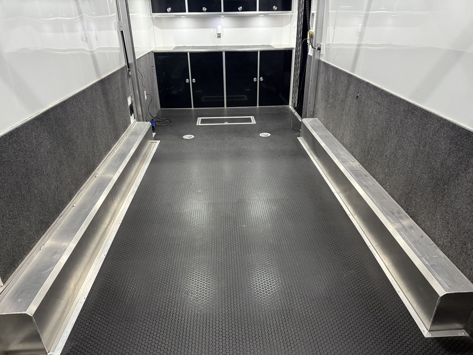 Quest 305 Aluminum Trailer8.5'W x 24'L x 11.33'H, (3) 6000# Torsion Axle(s) COLOR: POLAR WHITE COLOR - CABINETS: BLACK DOT TAPE 24 ft STD WHEEL BOX - SMOOTH AL STACKER - ST 305 BATTERY - 12V AGM (930 CA, 775 CCA) BATTERY BOX - IN-FLOOR - HOLDS UP TO 3 BATTERIES SWITCH - POWER CUT-OFF - MANUAL - 12V BREAKER BOX - 50 AMP - 120V ONLY - 60 AMP CONVERTER - 12V FUSE PANEL - INTELI-POWER UNIT CABINET - ALUMINUM - LOWER - STRAIGHT - FULL WIDTH CABINET - ALUMINUM - UPPER - STRAIGHT - FULL WIDTH - W/ RADIUS COUPLER - FLAT NOSE - 2-5/16" - 25,000# CROSS MEMBERS - ROOF - 16" O/C - 1" X 2" DOOR - REAR RAMP - HD PREMIUM - CONTINUOUS ALUMINUM HINGE - 3600# RATED MAX LOAD 6000# VEHICLE LOAD DOOR OPENING HEIGHT - REAR - 90" TRANSITION FLAP - TPO - BLACK COIN - 16" RAMP DOOR FLOORING - REAR - TPO - BLACK COIN DOOR LATCH - PADDLE - STAINLESS STEEL STEP - SLIDE IN/OUT - ALUMINUM - 36" EXTERIOR ALUMINUM THICKNESS - .050 FLOORING - TPO - BLACK COIN GRAVEL GUARD - ATP - 48" INTERIOR HEIGHT - 11.3' INTERIOR CEILING - SCREWLESS ALUMINUM INTERIOR WALLS - SCREWLESS ALUMINUM INTERIOR WALLS - BEDRUG - 40" HIGH JACK - STABILIZER - POD - 3000# LIFT SPLIT RAIL DESIGN 6000# CAPACITY 4 1/2" THICK TILT CAPABILITY