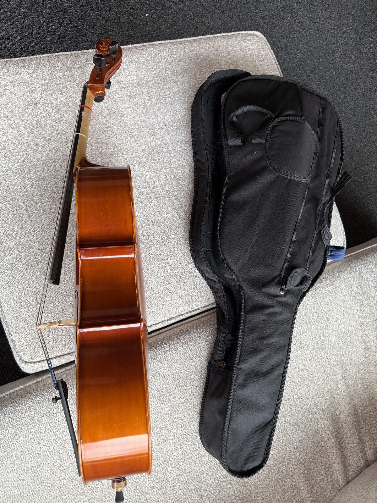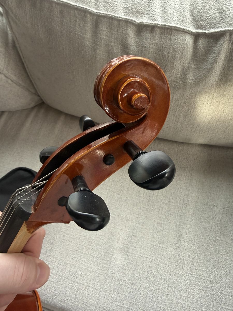 The cello is in great condition with no cracks or structural issues - normal wear. The finish is clean, the bridge is straight, and all four pegs are intact and functioning. Has been well cared for and is ready to play.