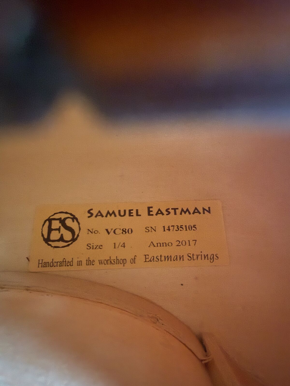 VenmoSelling a Samuel Eastman VC80 1/4 size cello, made in 2017. Eastman is a well-respected brand widely recommended by music teachers and used in school programs — retailing new for $1,500–$1,900, this is a serious student instrument, not a cheap beginner cello.