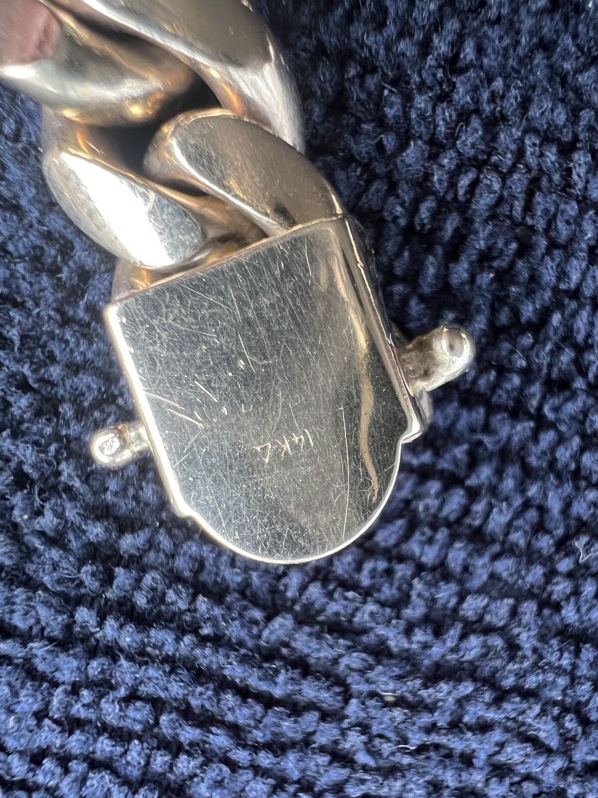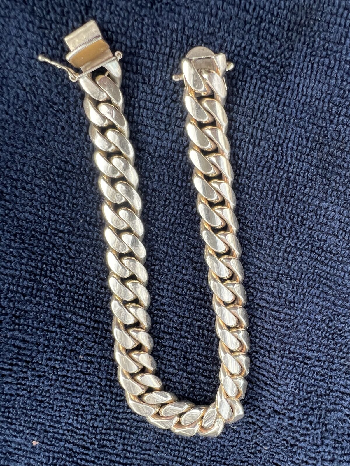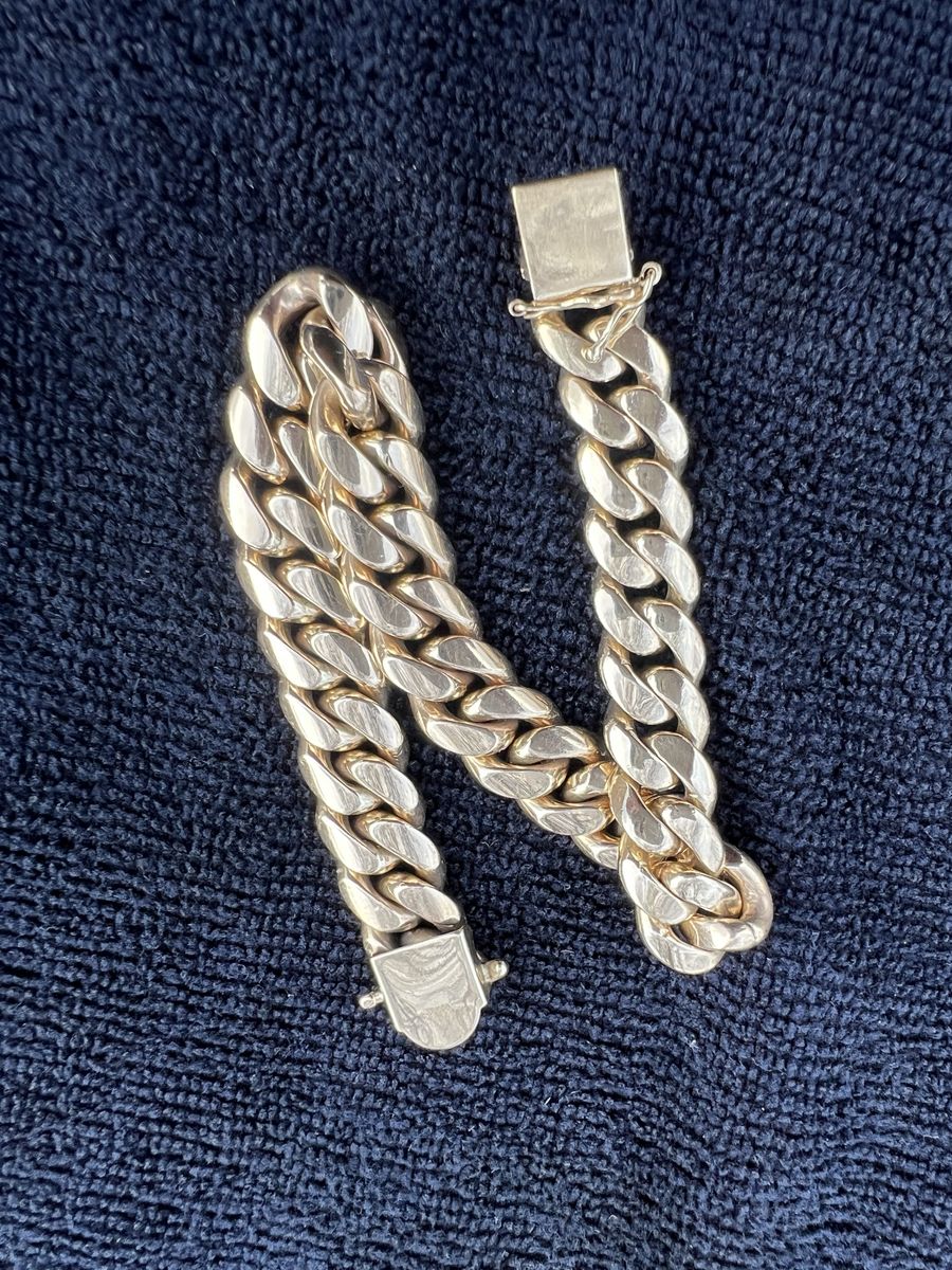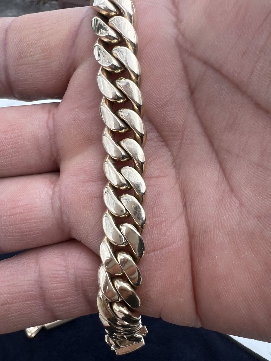 For sale heavy bracelet cuban link solid gold 14k. 81/2 inches long..11mm wide..76.2 grams. !!asking price 7600$ cash only no trades !! Hand made. Custom made!! More info call or text 801 680 0230 Hablo español.
