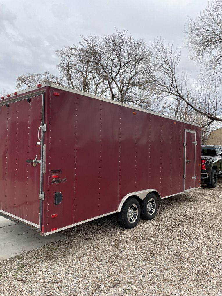 22’ Pace Enclosed Trailer. Box is 22’ long plus 2’ V X 8’ wide. Good tires, good lights, heavy duty ramp. $8,000 / offer. Call or text for more info.