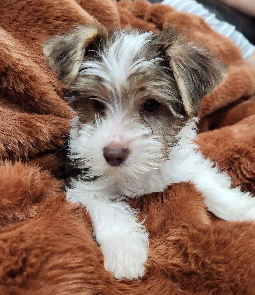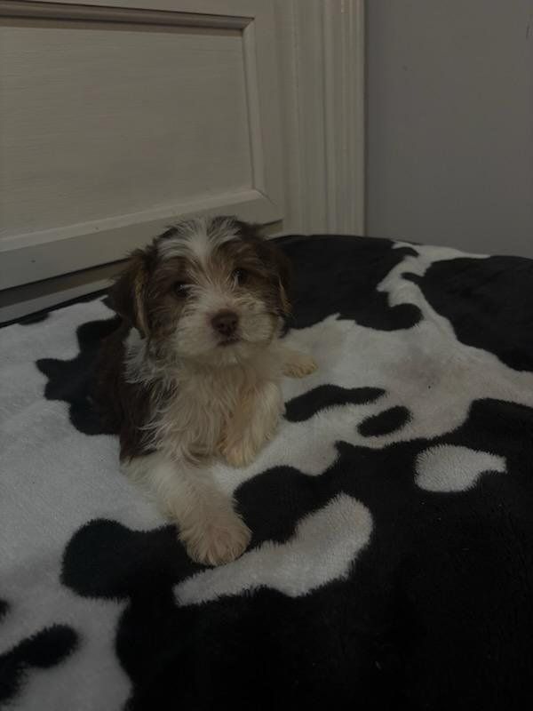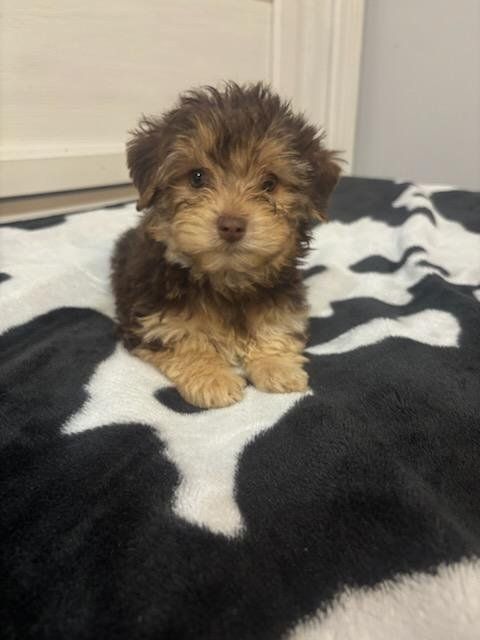 they are so loyal and caring for their human parent.. they come from a loving spoiled home Perfect as loving companions for any family or individual yorkies are known for their affectionate nature and strong bonds with their owners, often forming close attachments Yorkies have an alert nature and protective instincts, making them effective watchdogs. They can be trained to perform tricks, and some even excel in obedience and agility. Yorkies are intelligent, and hypoallergenic great for small homes or apartment Mom 4 lbs is a silver yorki and has the Parti gene from her momma , smart, adorable and throws amazing colors Dad is 5lbs tradtional. does not carry parti gene, just traditional Yorkshire Terrier Silver and tan. parents are the last photos