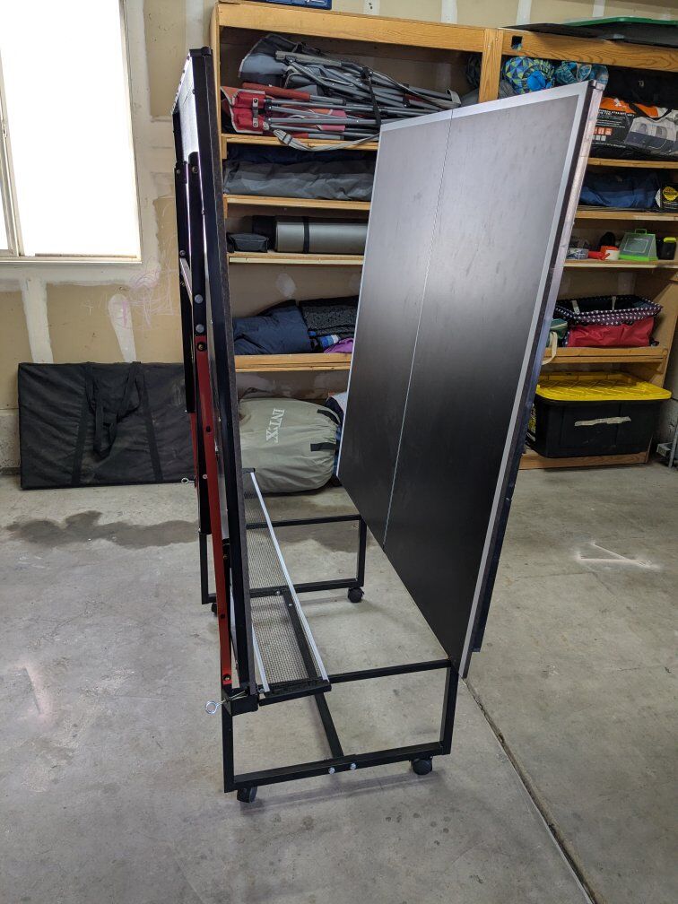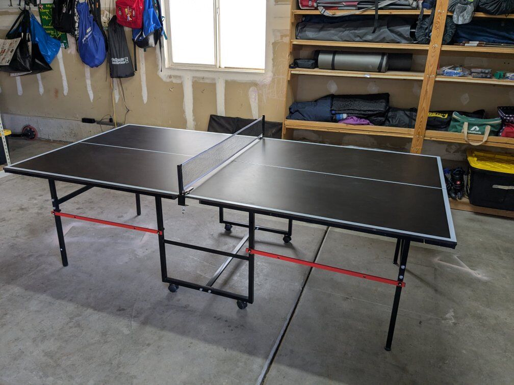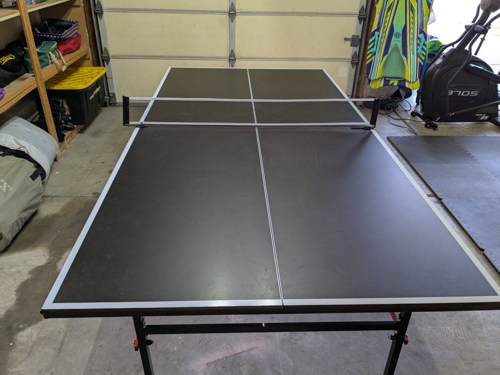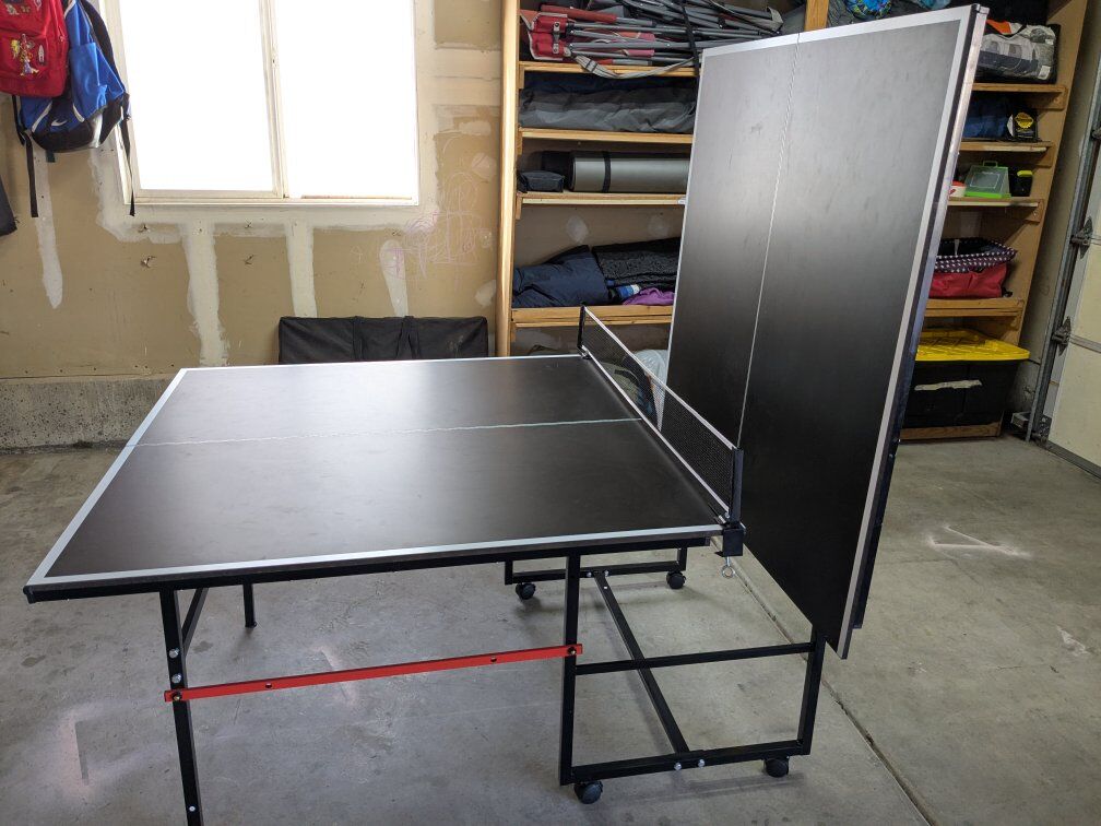 VenmoThis ping pong table is in great shape! it has wheels that lock in place so it's not rolling around on you while you play. It measures 4 feet by 8 feet, folds up, and comes with 3 paddles and a net. The white line down the middle of the table is actually a small opening from the two pieces of wood coming together, so if the ball lands just perfectly on that line, it bounces weird. It rarely happens in play to get such a particular shot, but just a heads up. Pickup in Layton right by Shoreline Jr High.