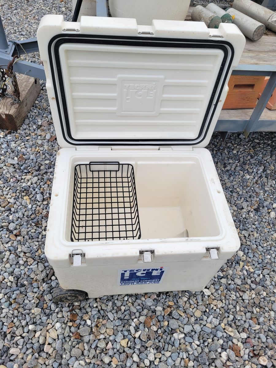 A great cooler...Will keep ice for over a week..has food basket , wheels , carry handle etc