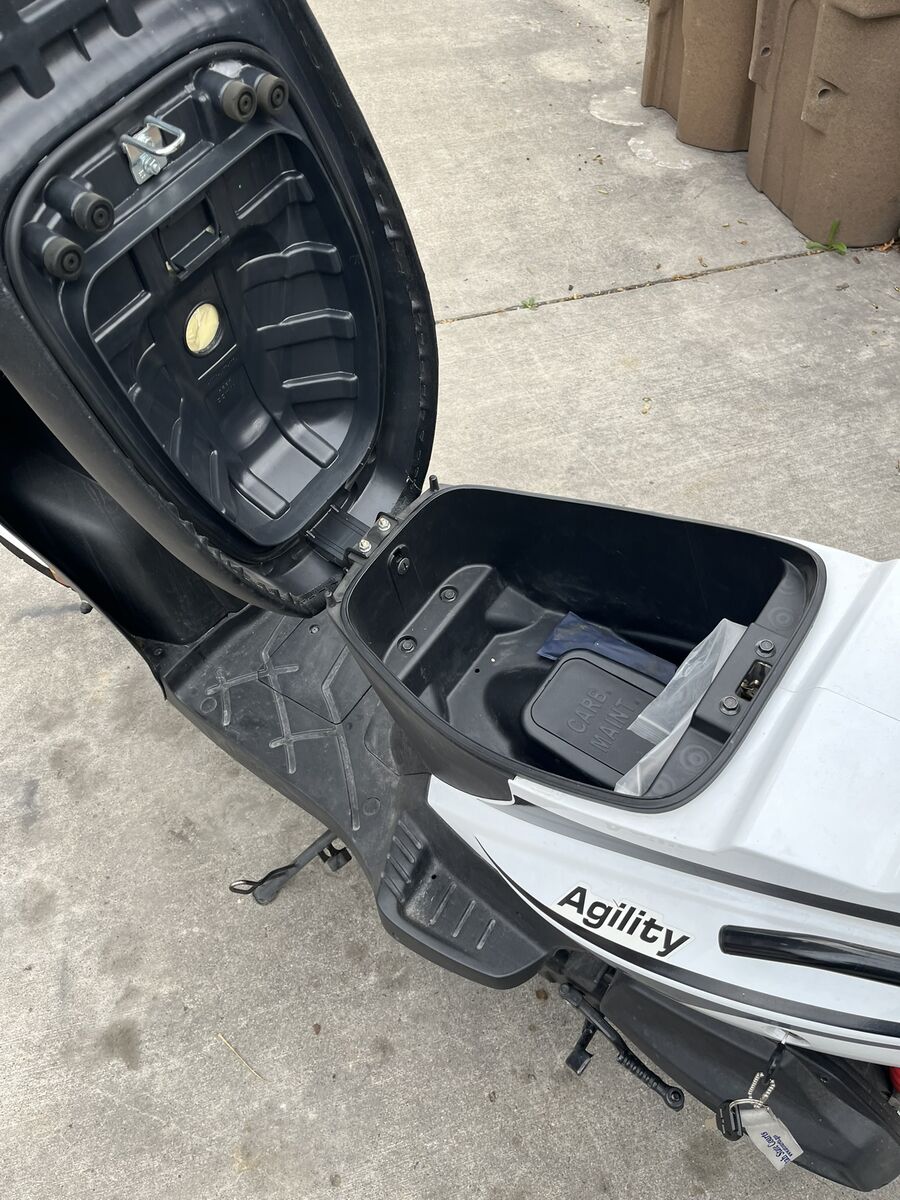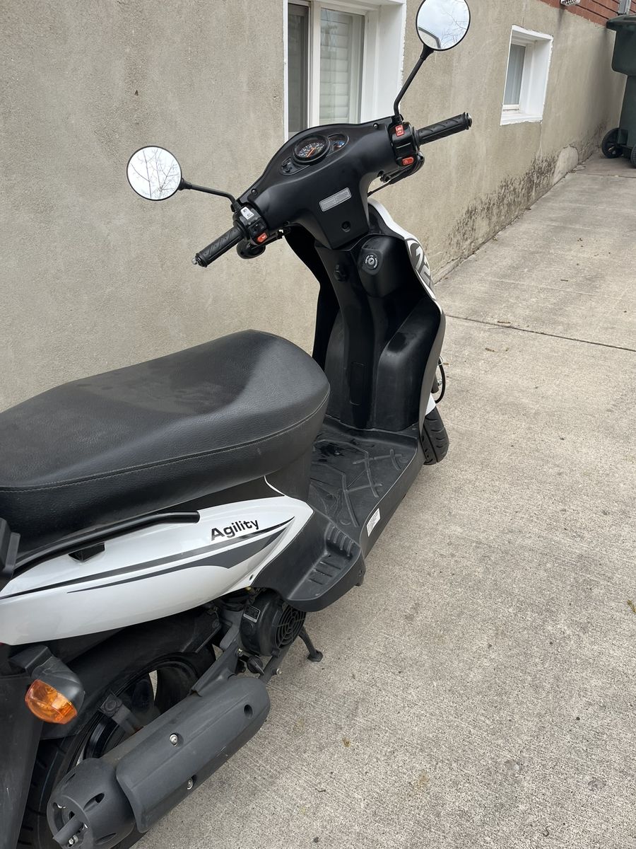 The 2022 KYMCO Agility 125 is a 124.6cc, CARB-compliant 4-stroke scooter designed for urban commuting, 99 MPG fuel efficiency. It features a CVT automatic transmission, 12-inch wheels, front disc/rear drum brakes, and a 30.9-inch seat height. It has electronic start and a also a kick starter. A kick stand and a center stand for maintance. Has a brand new truck box. odometer 3800KM or 2360 Miles.