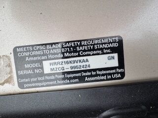 VenmoHonda HRR216 K9VKAA (9952424) 21 Lawn Mower, Self Propel, Like New.\