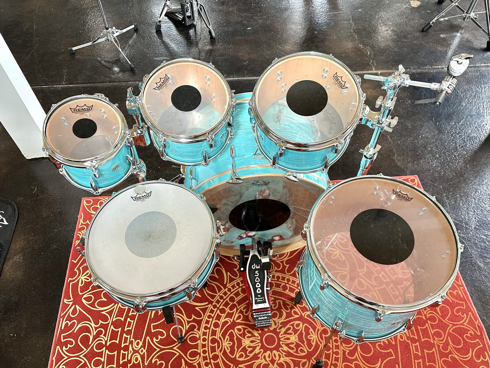 Sizes: 24x14 bass drum 8x8 rack tom 10x8 rack tom 12x8 rack tom 16x14 floor tom 5x14 snare drum