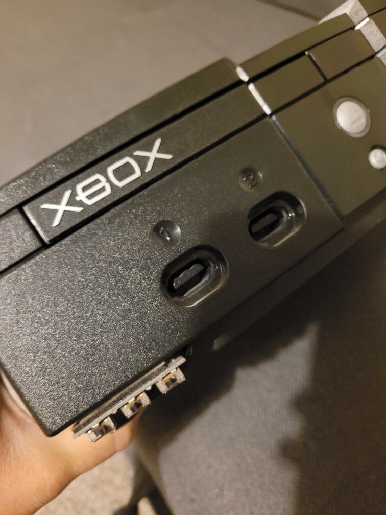 orginal xbox. this xbox was modded at one point with a bunch of old school games if I remember correctly but I can't get it to load. does turn on then flashes red maybe someone can fix it. I don't have cables for it.