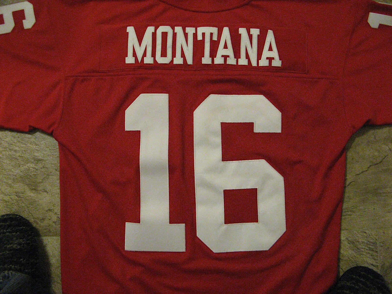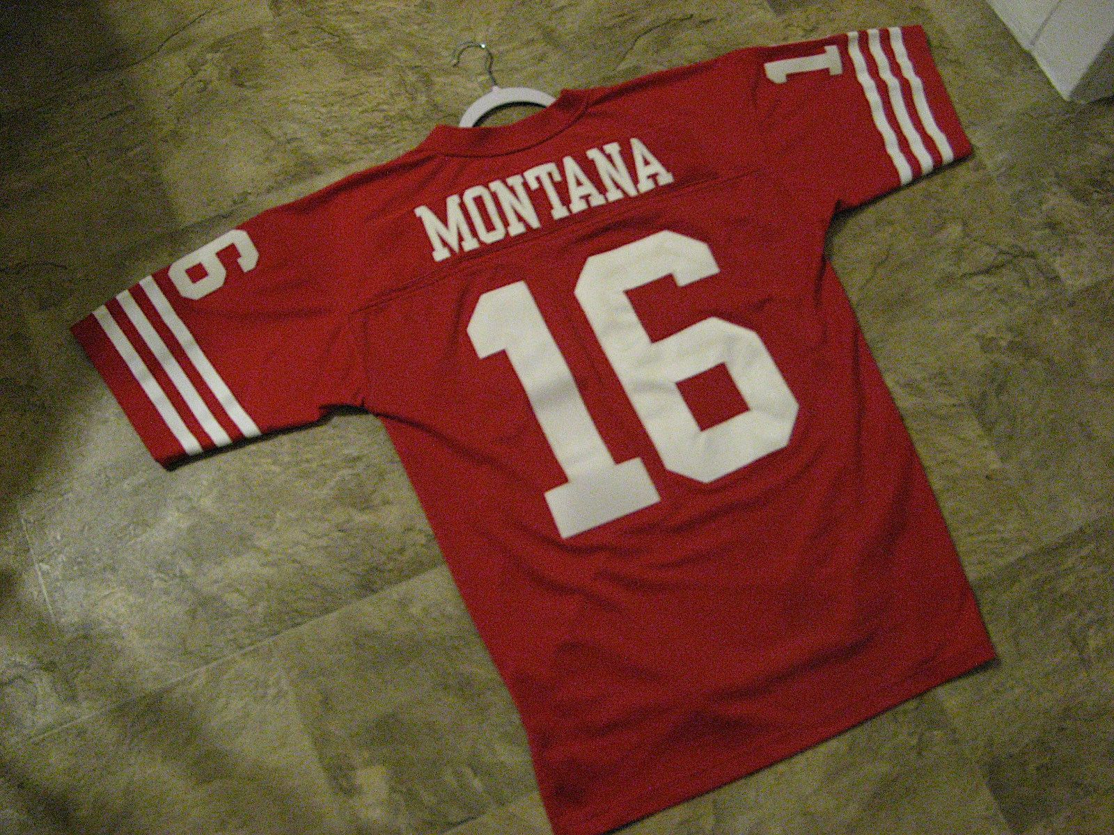 Joe Montana 49ers #16, Mitchell & Ness, 1990 Throwback Jersey, Red, Size EXTRA LARGE.