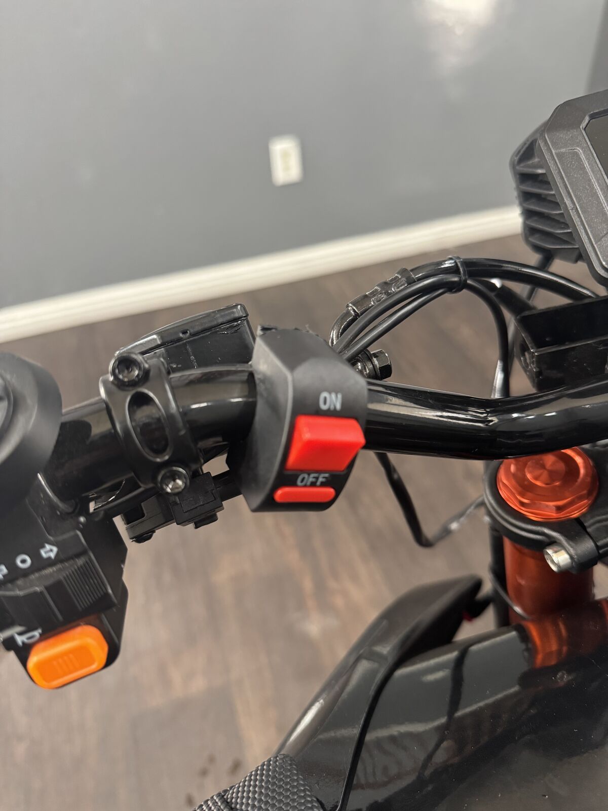 No more knees hitting the key. (Custom On/Off switch. Break light and turn signals modified Power zone seat cover Instant torque – pulls hard Battery charges and holds strong Smooth ride – street & light trail ready Very clean – well maintained No issues - Turn on and GO New ODI grips