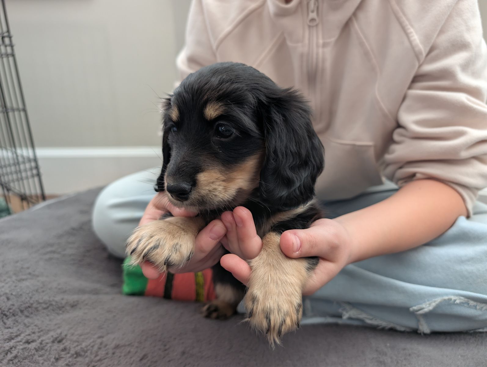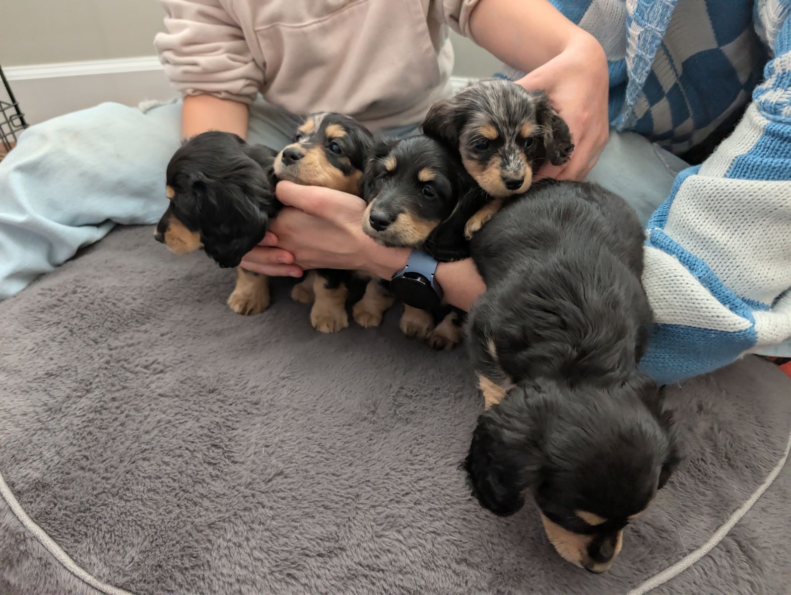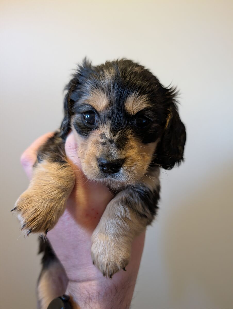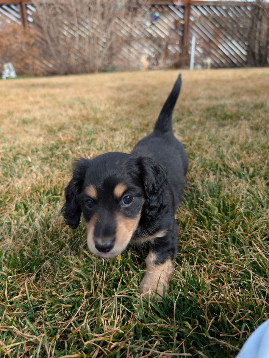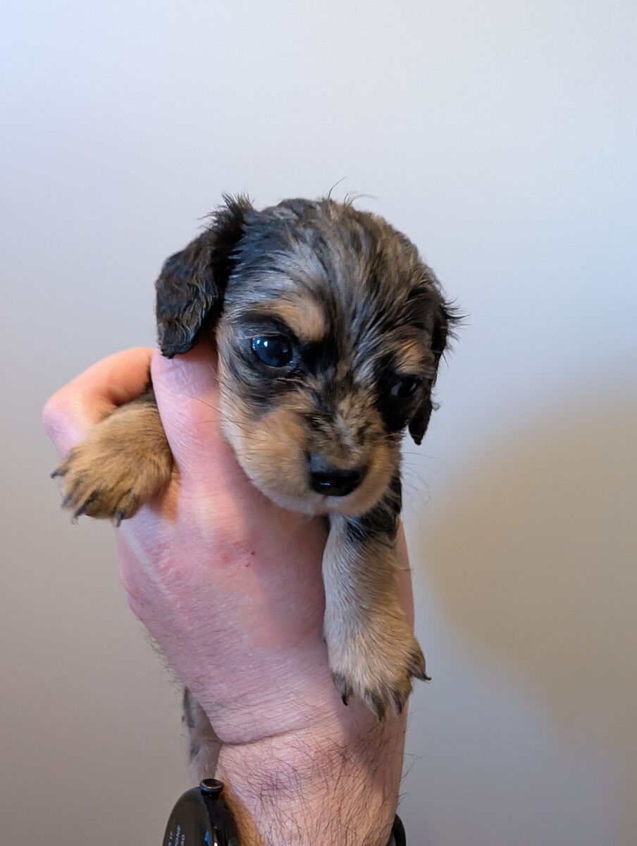 ZelleWe have a beautiful litter of 5 long hair dachshund puppies looking for their forever home. Born Jan 11th. They are incredibly sweet, playful and love being held with lots of attention. Puppies are AKC pet only and will come with their first set of shots, dewormed, a small bag of puppy food, a toy, and a new puppy AKC puppy information packet with their registration material. Puppies will be ready to go on March 22nd. Deposits are not required but I will hold puppies with a $250 non refundable deposit.