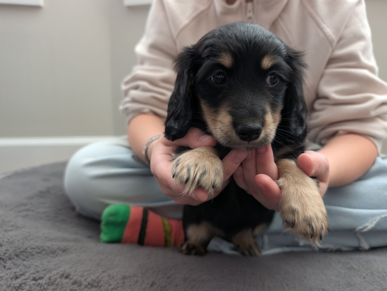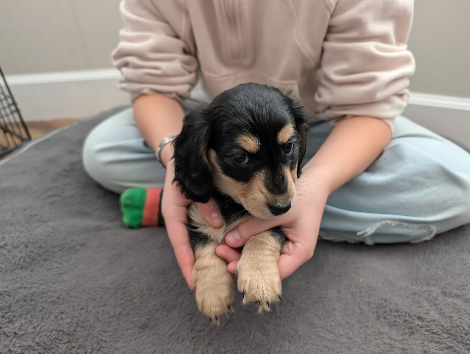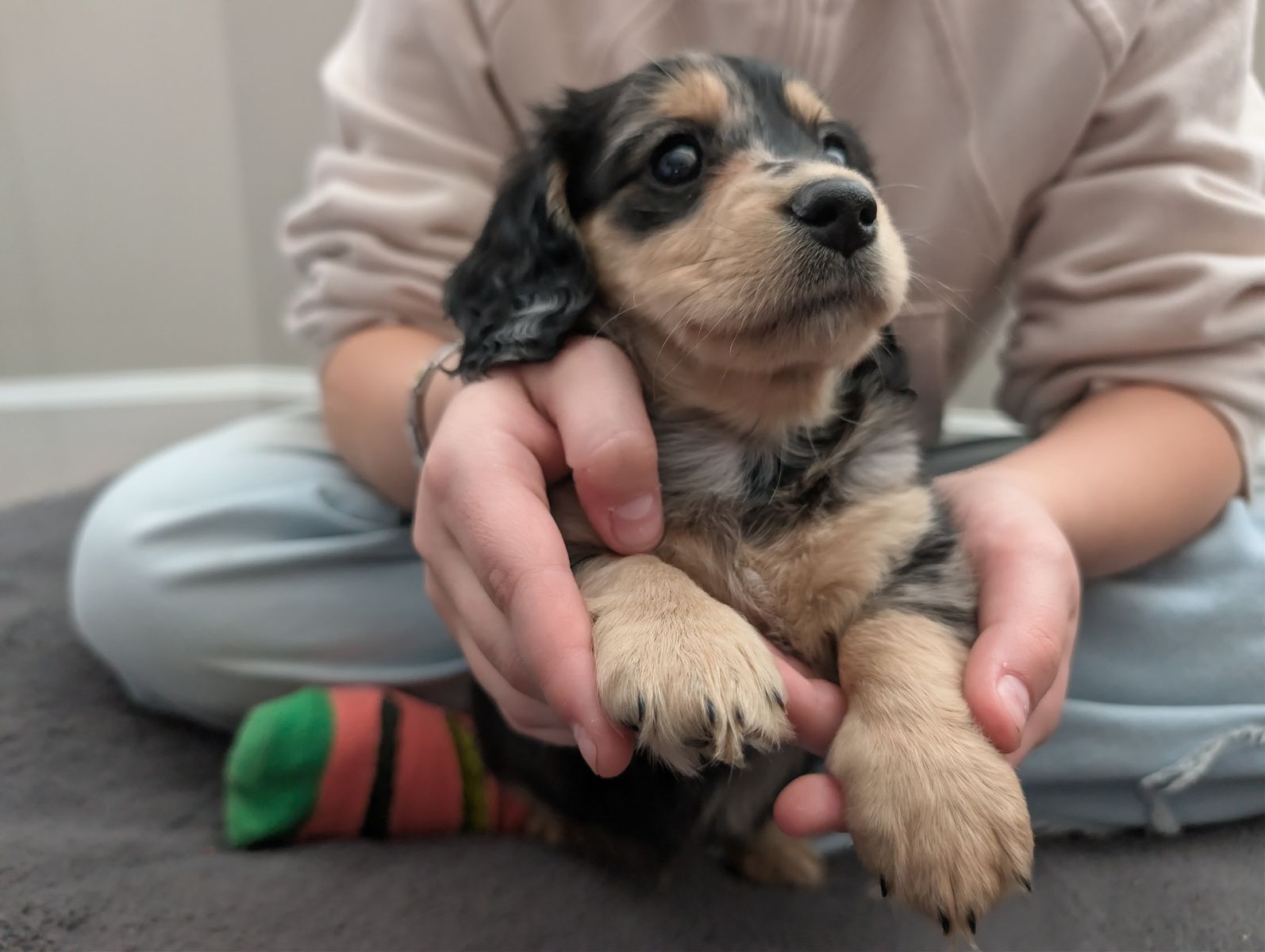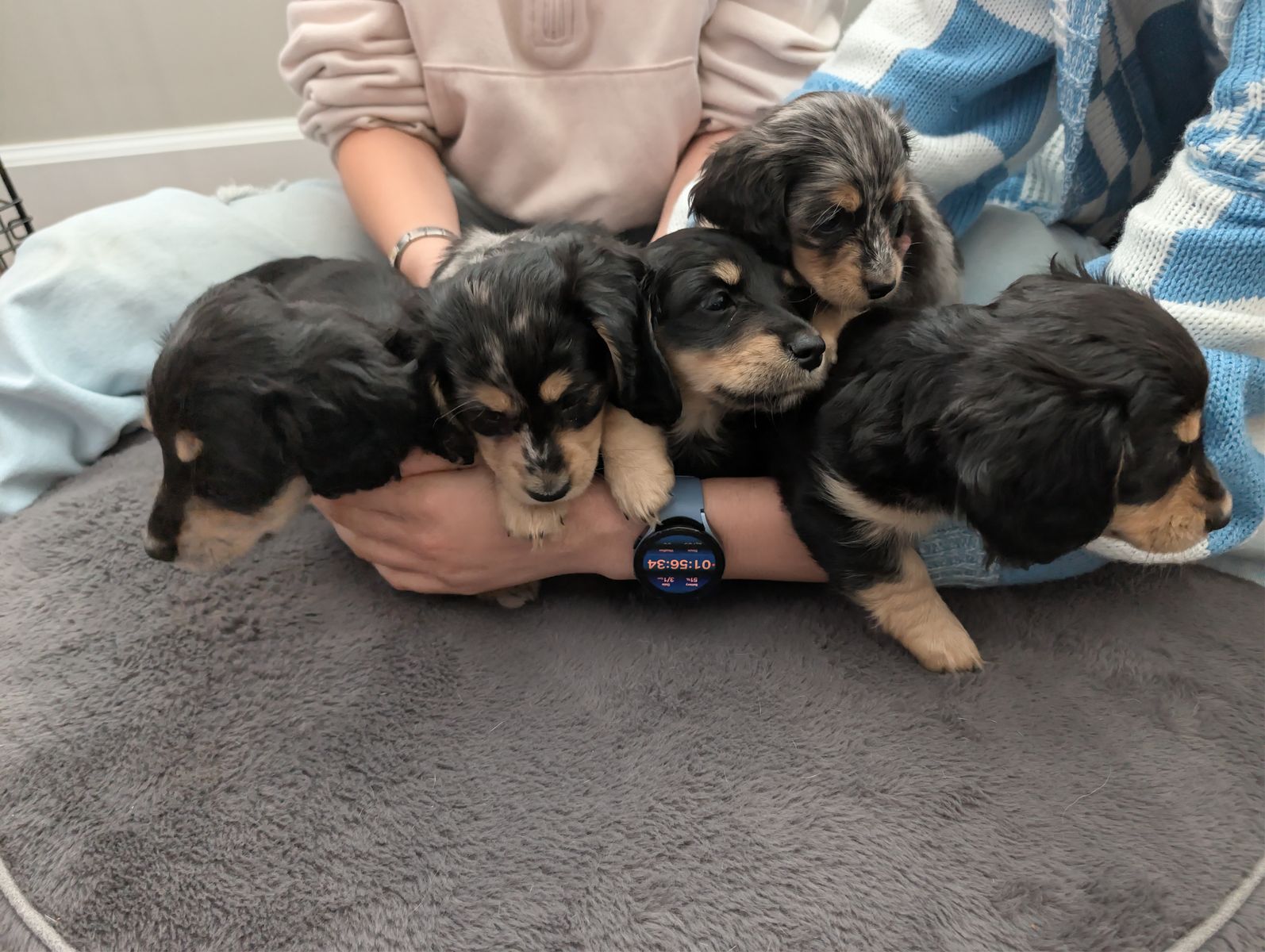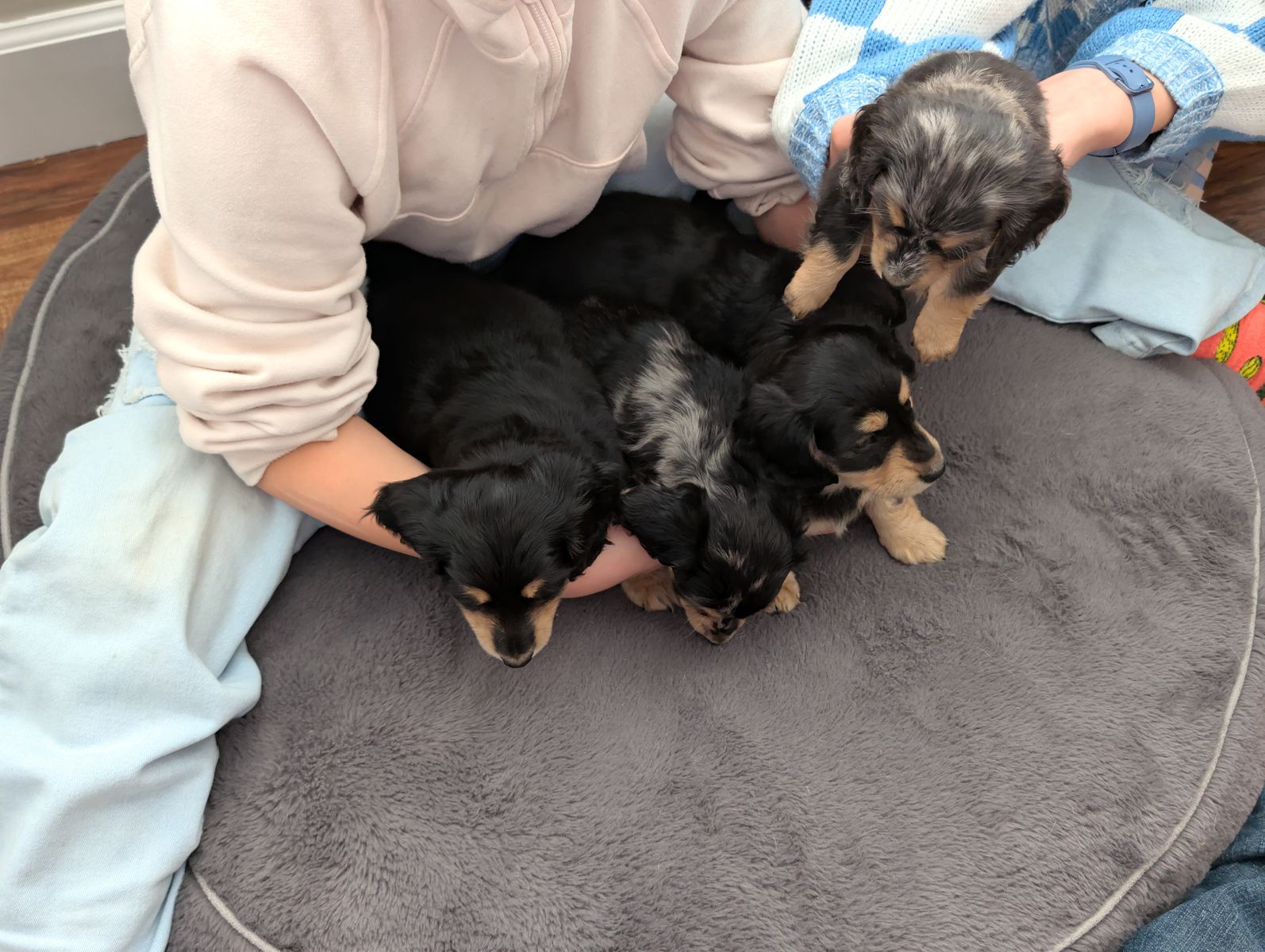 ZelleWe have a beautiful litter of 5 long hair dachshund puppies looking for their forever home. Born Jan 11th. They are incredibly sweet, playful and love being held with lots of attention. Puppies are AKC pet only and will come with their first set of shots, dewormed, a small bag of puppy food, a toy, and a new puppy AKC puppy information packet with their registration material. Puppies will be ready to go on March 22nd. Deposits are not required but I will hold puppies with a $250 non refundable deposit.