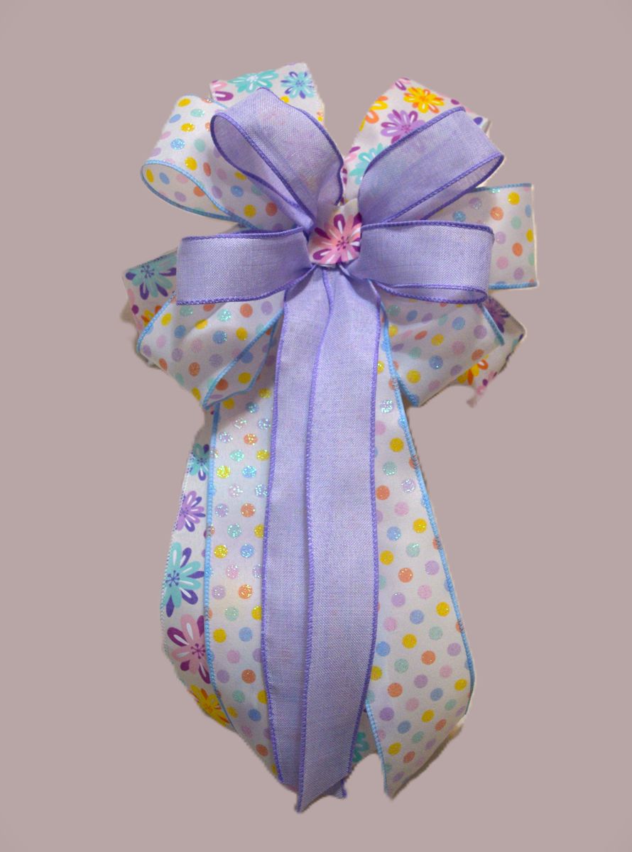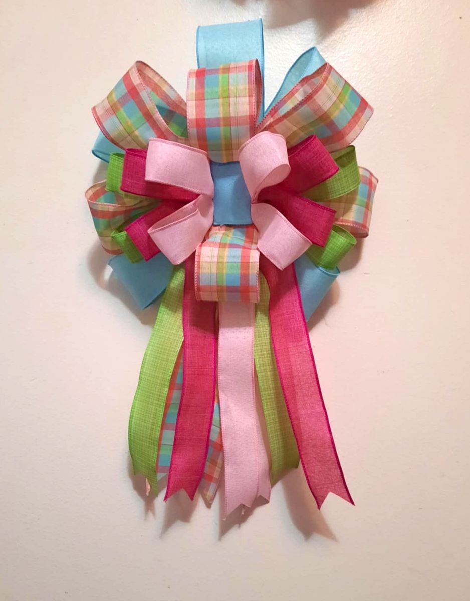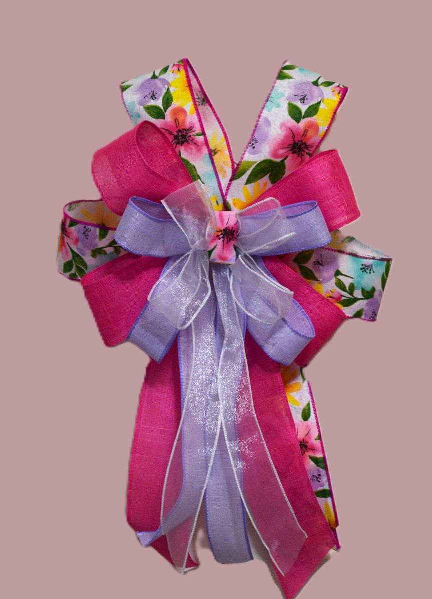 VenmoHandcrafted Bows made with wired ribbon. Perfect for wreaths, decorative lanterns, bannisters, chairs, mailboxes, or any space that needs a bit of charm. This would also be lovely for Easter or Spring decor! Measurements: approximately 12 inches across, 12 to 15 inch tails, total length of about 20 inches I have a variety of colors and styles of bows. Message me if you have questions. Thank you!