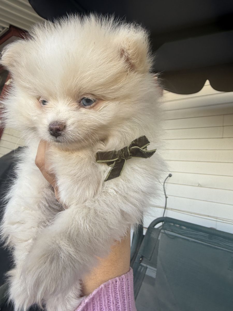 ApplePayPomeranian with a little bit of Klee Kai in them! Dogs will only get about 10 lbs full grown. My full grown pups are both 6-7 lbs. These dogs are so fun and sweet! 1 female, 2 males