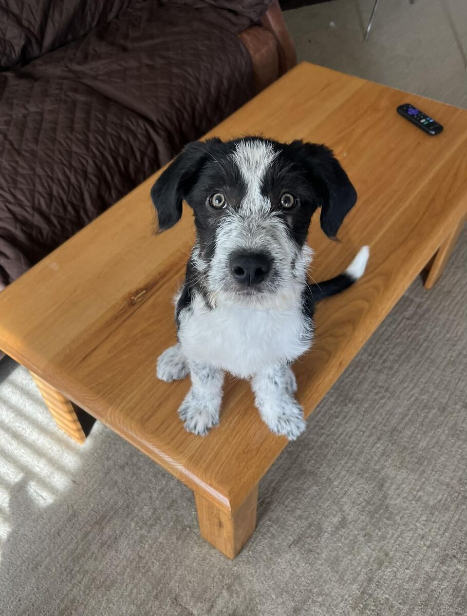 This sweet little 3-month-old Bearded Collie/Black Lab mix is looking for a fresh start. Through no fault of his own, apartment life just wasn’t the right fit — but that doesn’t change what a good, loving puppy he is.