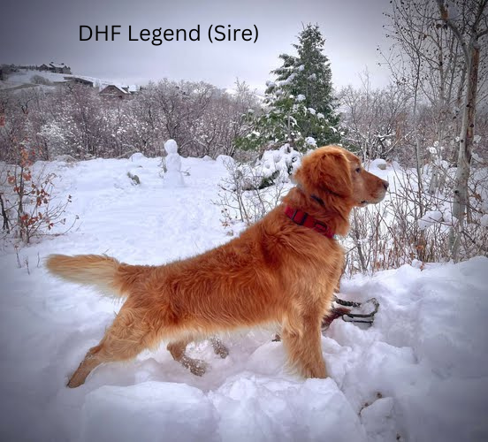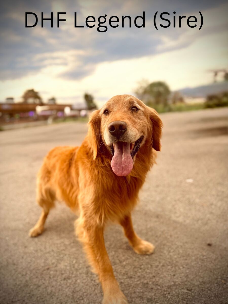 DHF Legend (Sire) 60-65 lbs, with a red coat. He is very friendly, happy, easy going, calm, obedient, sweet, and loves hiking and camping.