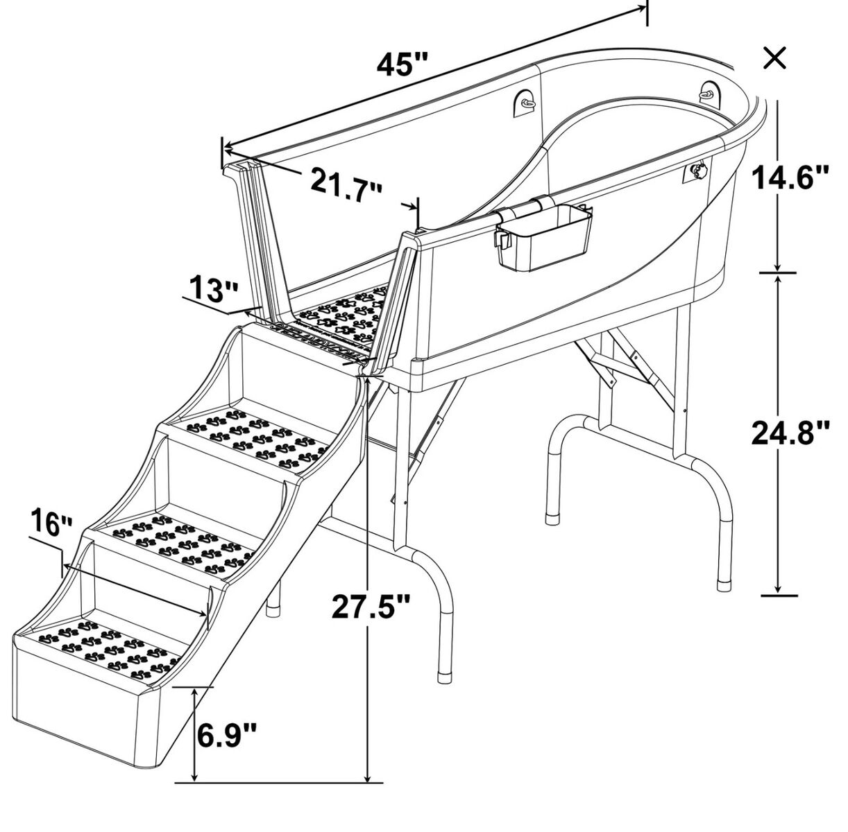 SHELANDY 45 Pet Grooming Bathtub Dog Wash Station | Heavy Duty Bathing Tub (Bathtub & Stairs Combo)