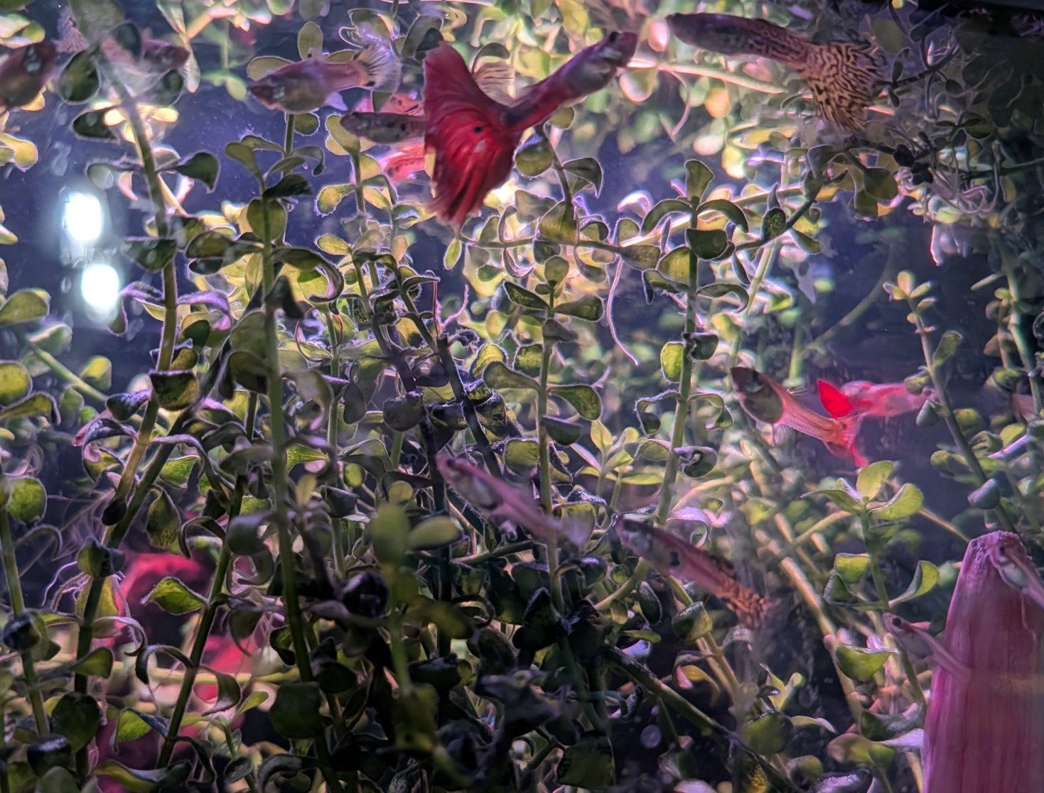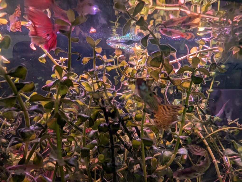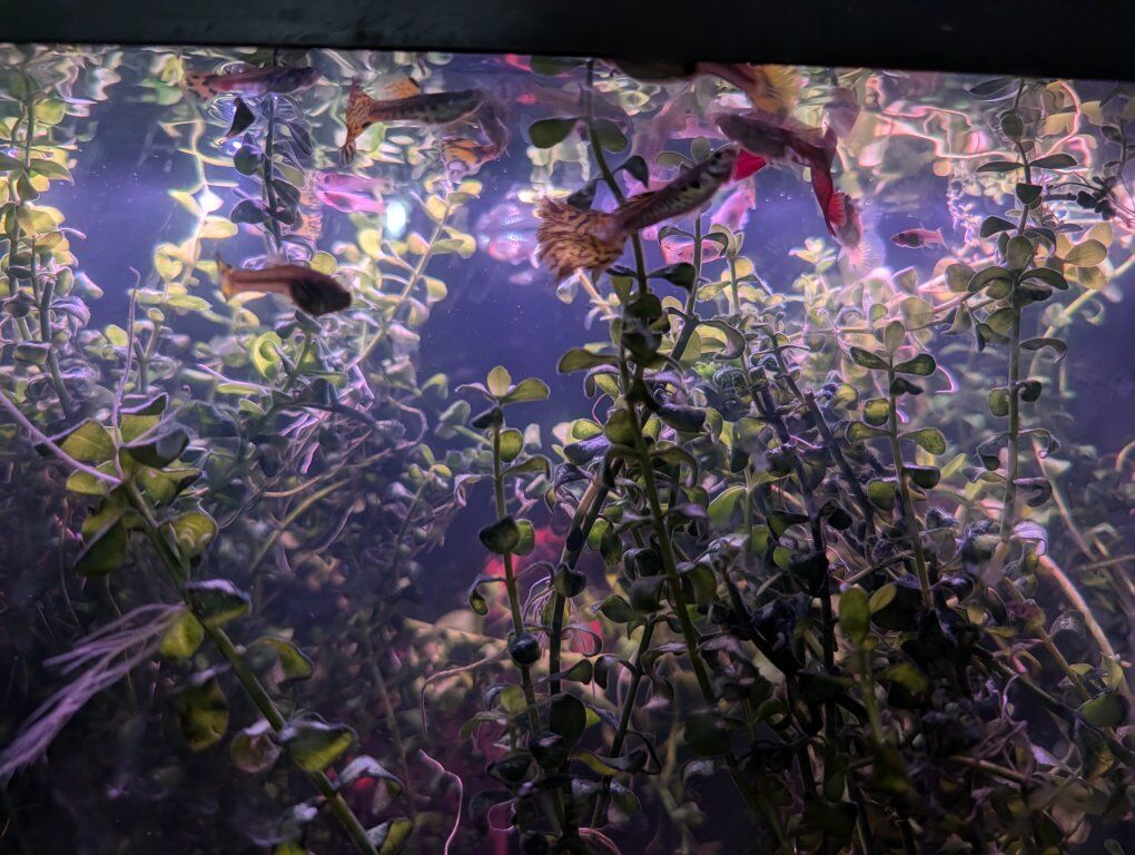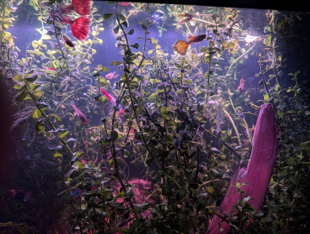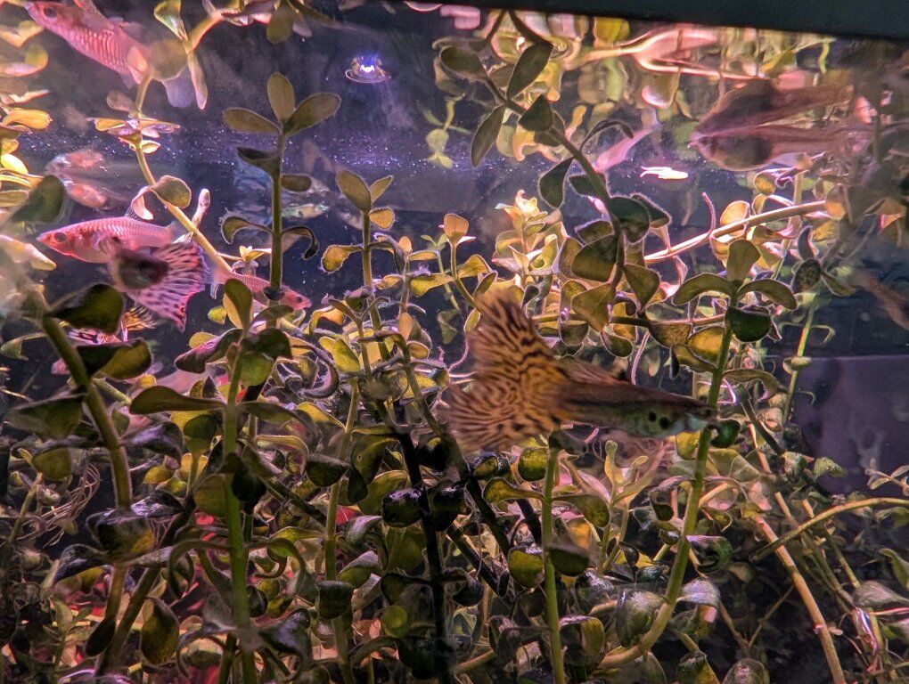 VenmoShow ready Fancy cobra guppies -live fish -snakeskin red mosaic, yellow tiger halfmoon mosaic and Aquarium Plants - bacopa monnieri – waterhyssop