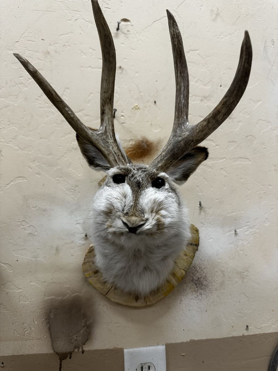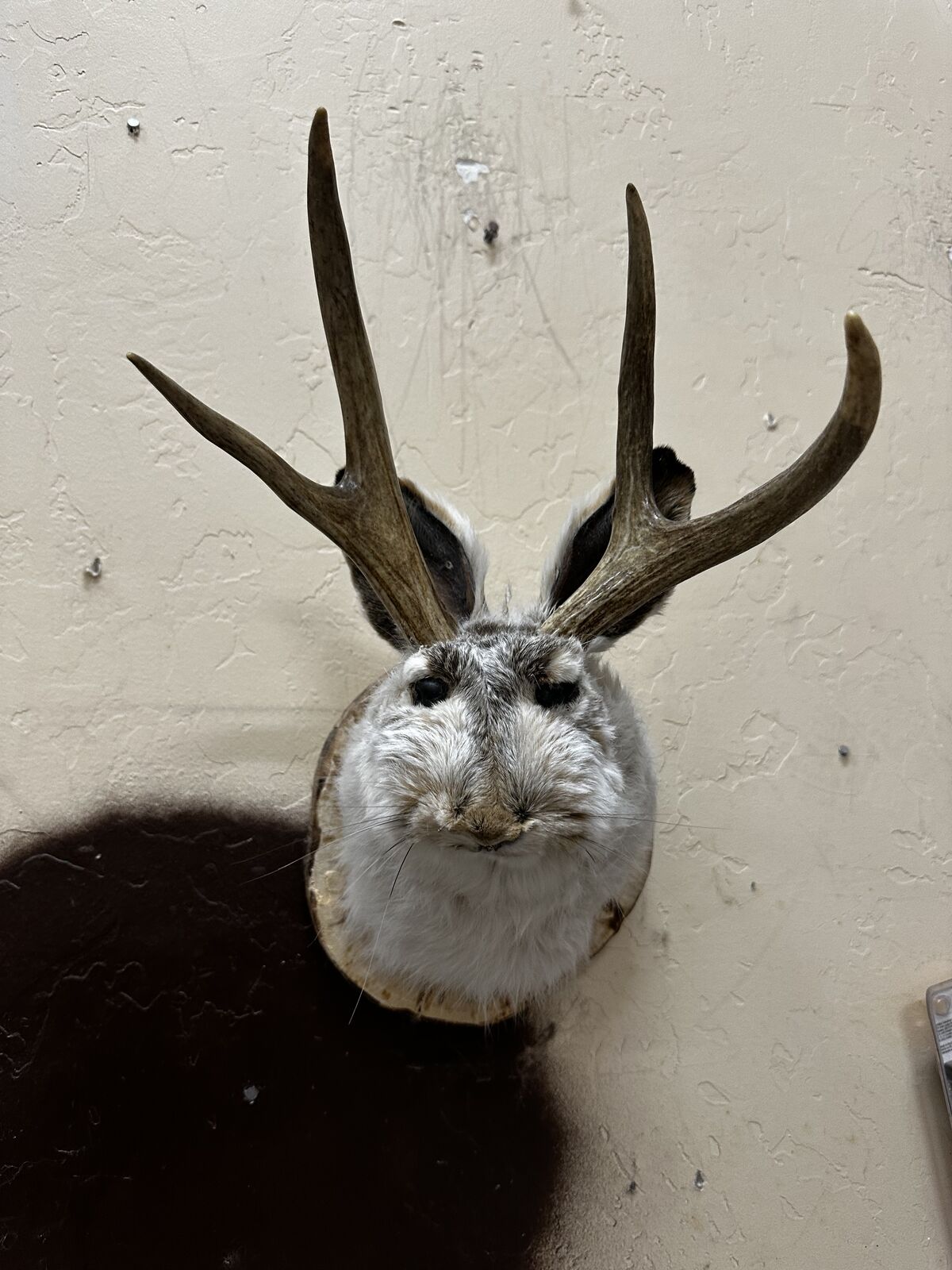 Brand new Jackalopes from real Mtn Hares and REAL ANTLERS FROM UTAH; Idaho and Wyoming; Retailing at over 279 dollars we have ten really good ones left from filling our accounts in the west and Europe; Only 85 dollars; Cash or credit card; We will receipt you on your card and hold til you pick one up; We are two miles north of Logan in Hyde Park and have delivered to ogden SlC area when we get down there; Usually once a month; no problem taking them to your business or residence then; Mounted on custom Quaking Aspen plaques; WE STAND BY THEM FOR lifetime of the Mount as well; Dropped ; damaged; we will fix or replace as long as they weren’t dropped in water;