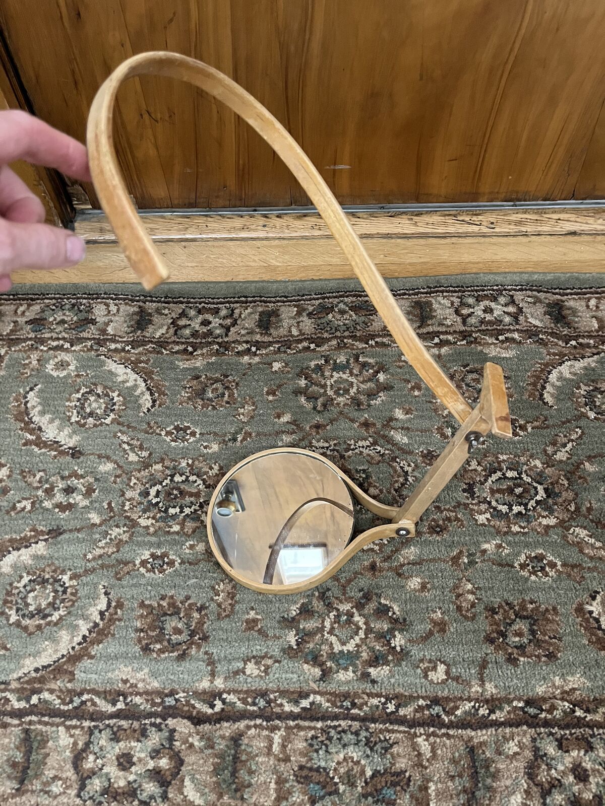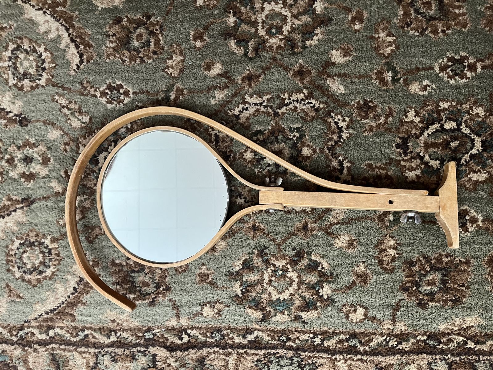 VenmoSuper cool man's mirror for shaving. It measues 15 /14 inches tall x 8 inches across. The mirror has a little aging on it. This is a really neat display item. Must see! Selling for a parent. Price is firm.