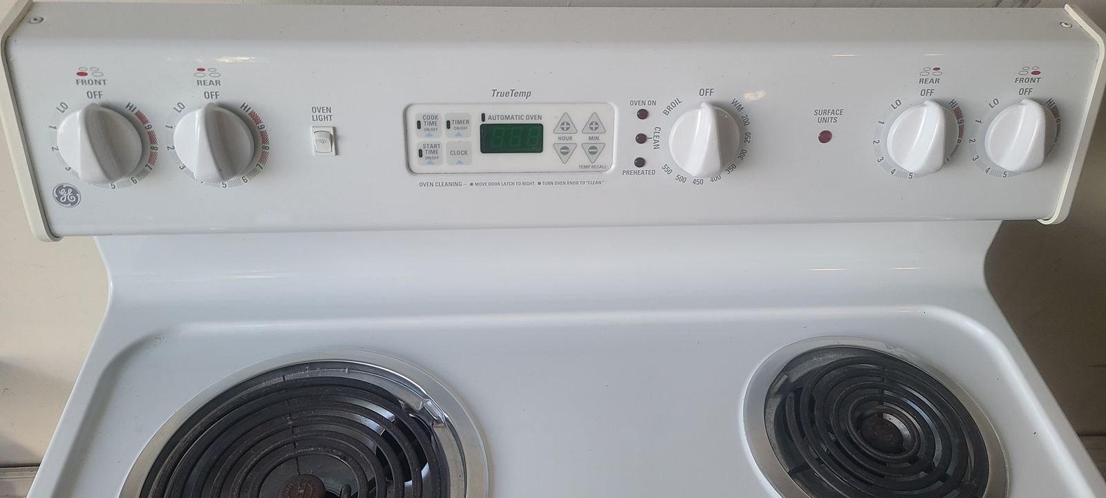 White stove, Self Cleaning feature, 4 burners, lightly used and super clean. $250