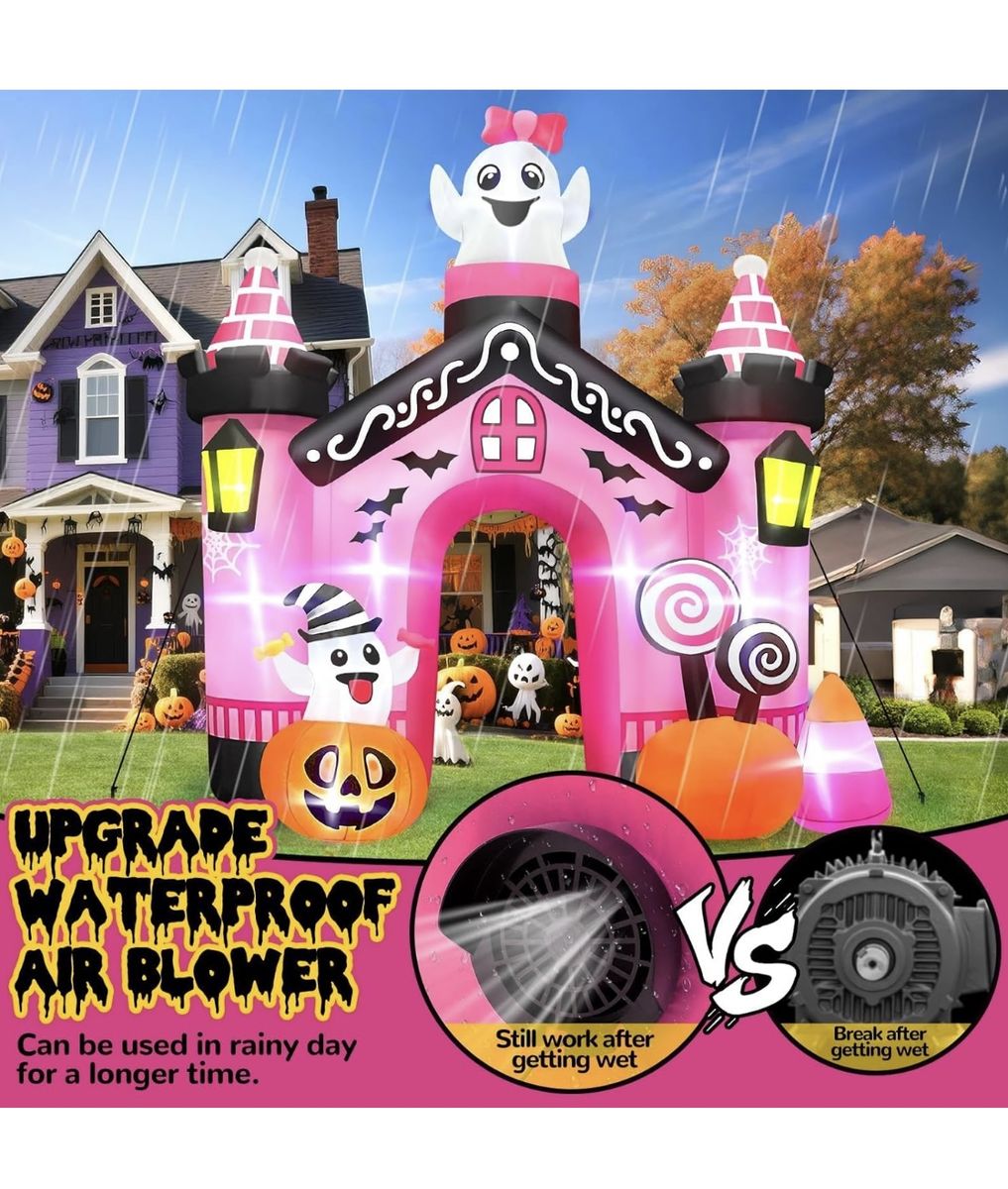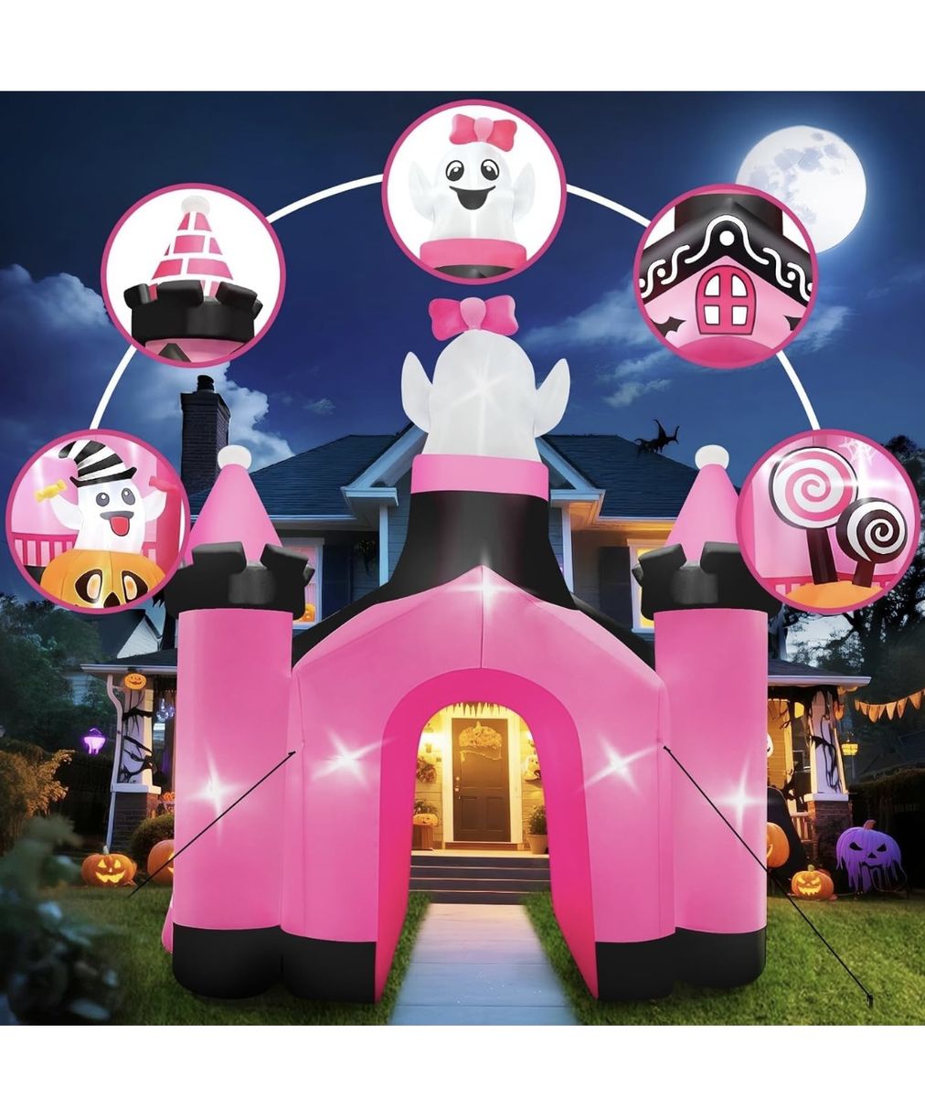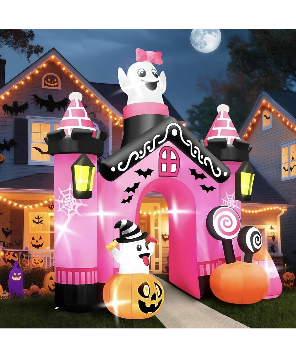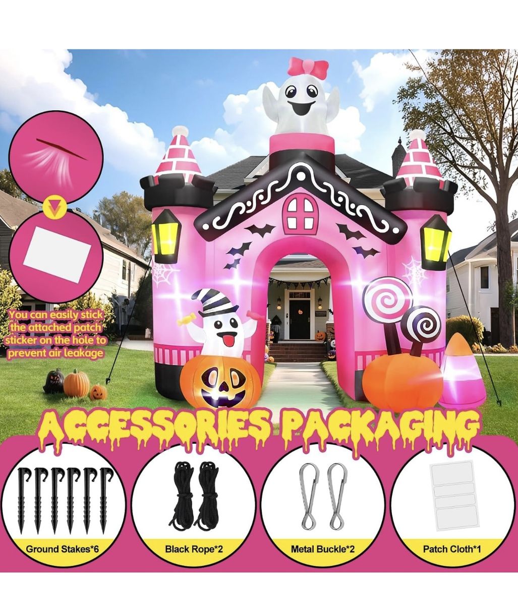 CashAppHalloween PINK Ghost Arch Archway Inflatable Blow Up Candy Pumpkin Home Decor Decoration Yard Prop