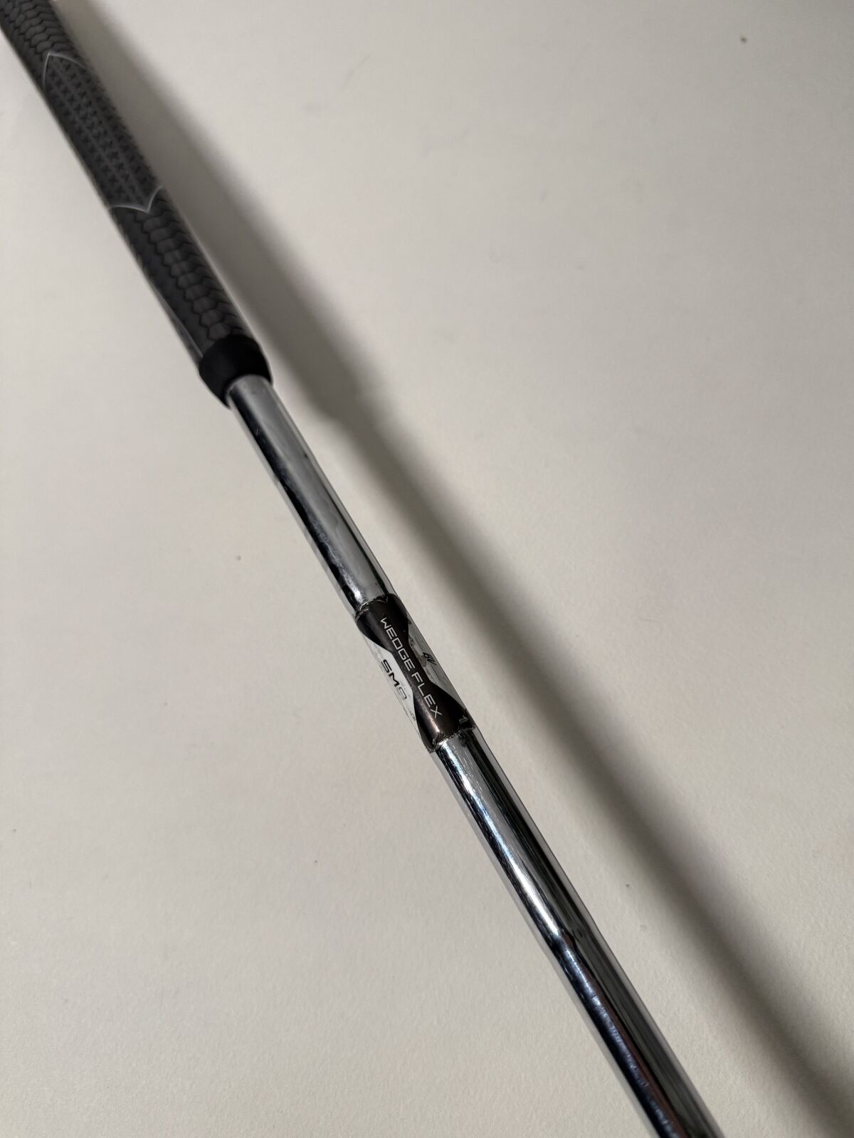 Shaft is wedge flex steel (standard Vokey wedge flex). Grip is in playable condition.
