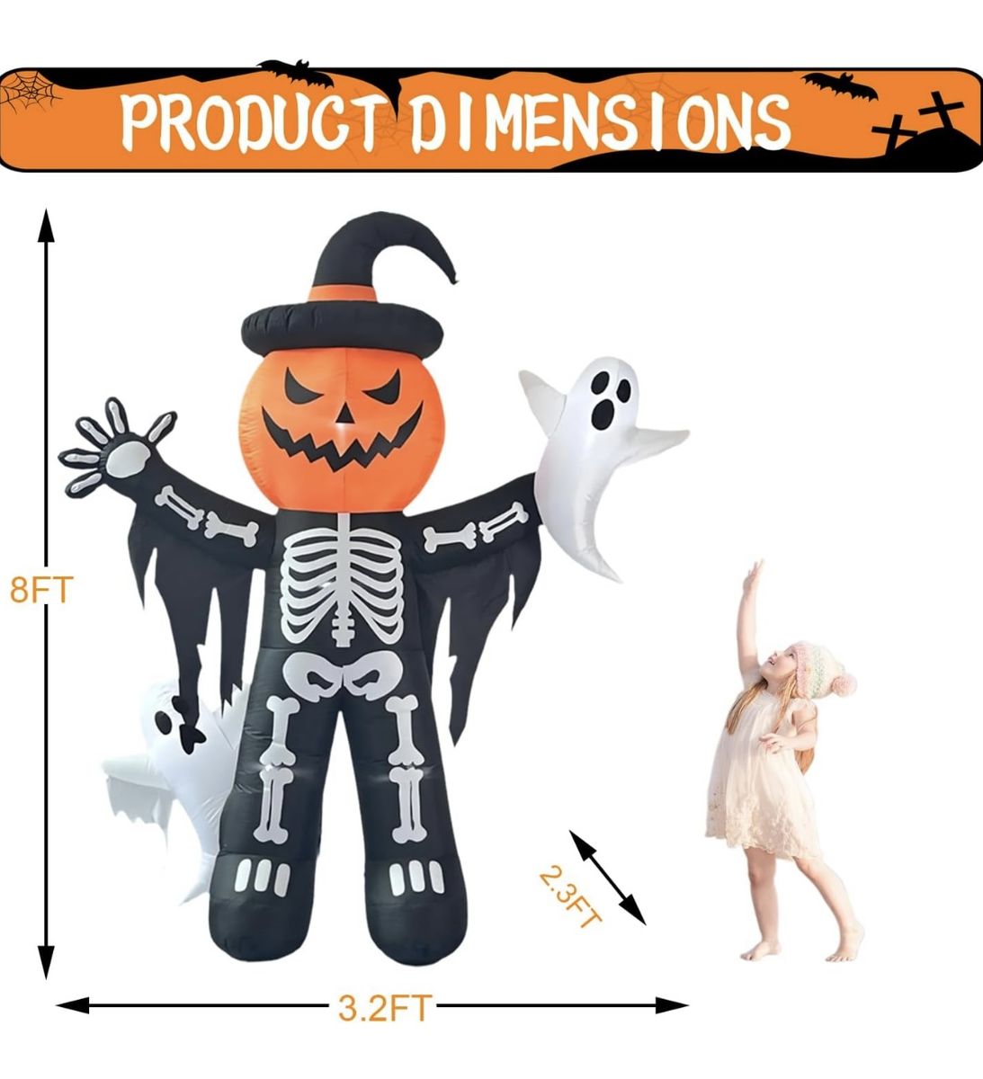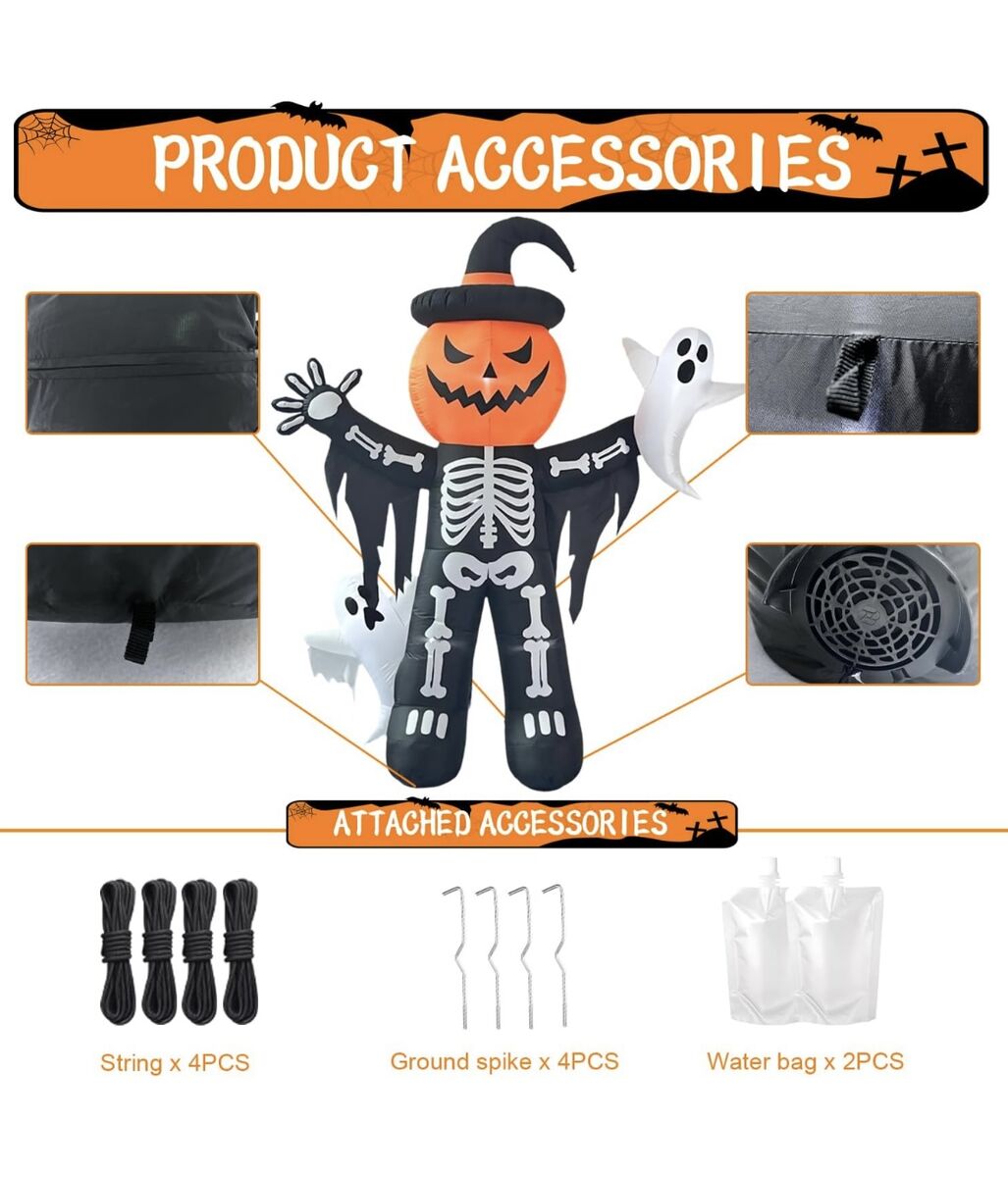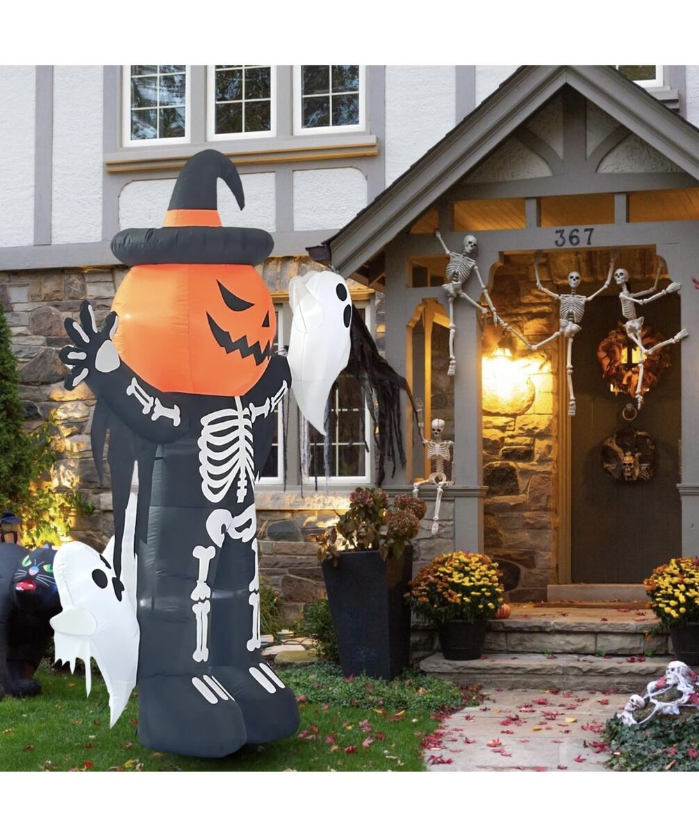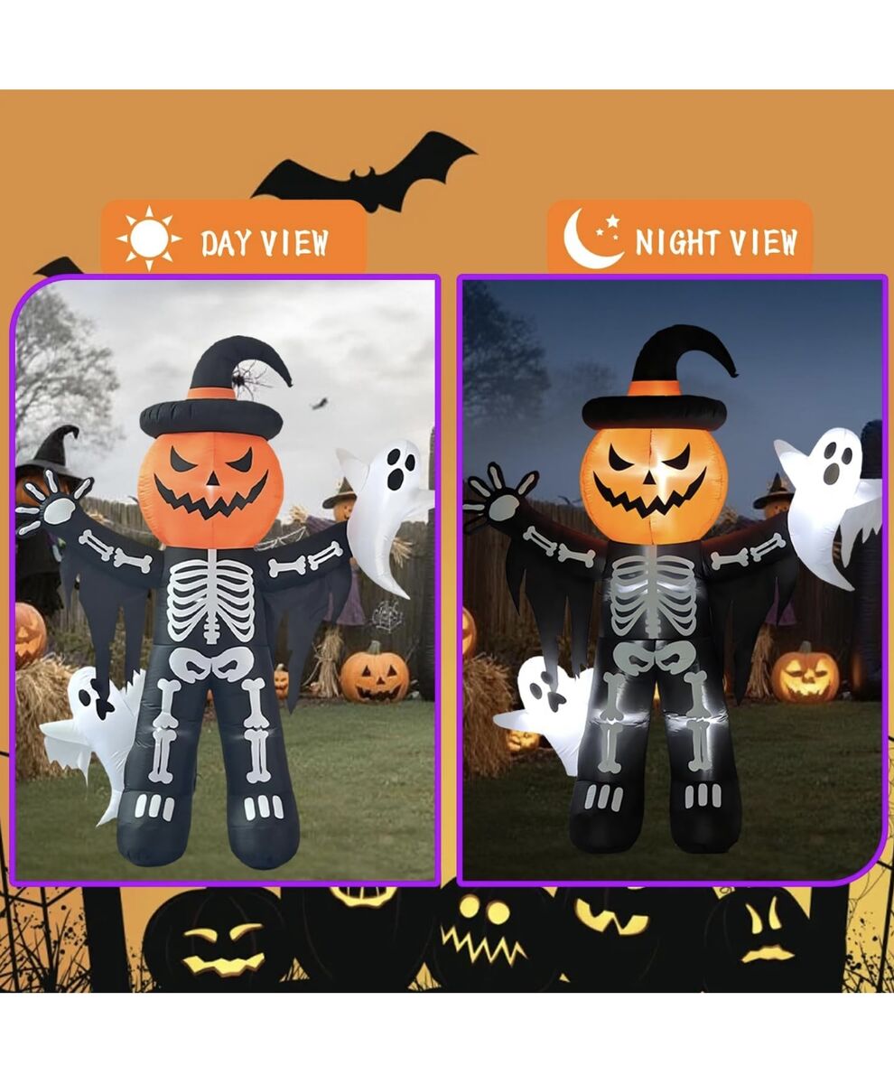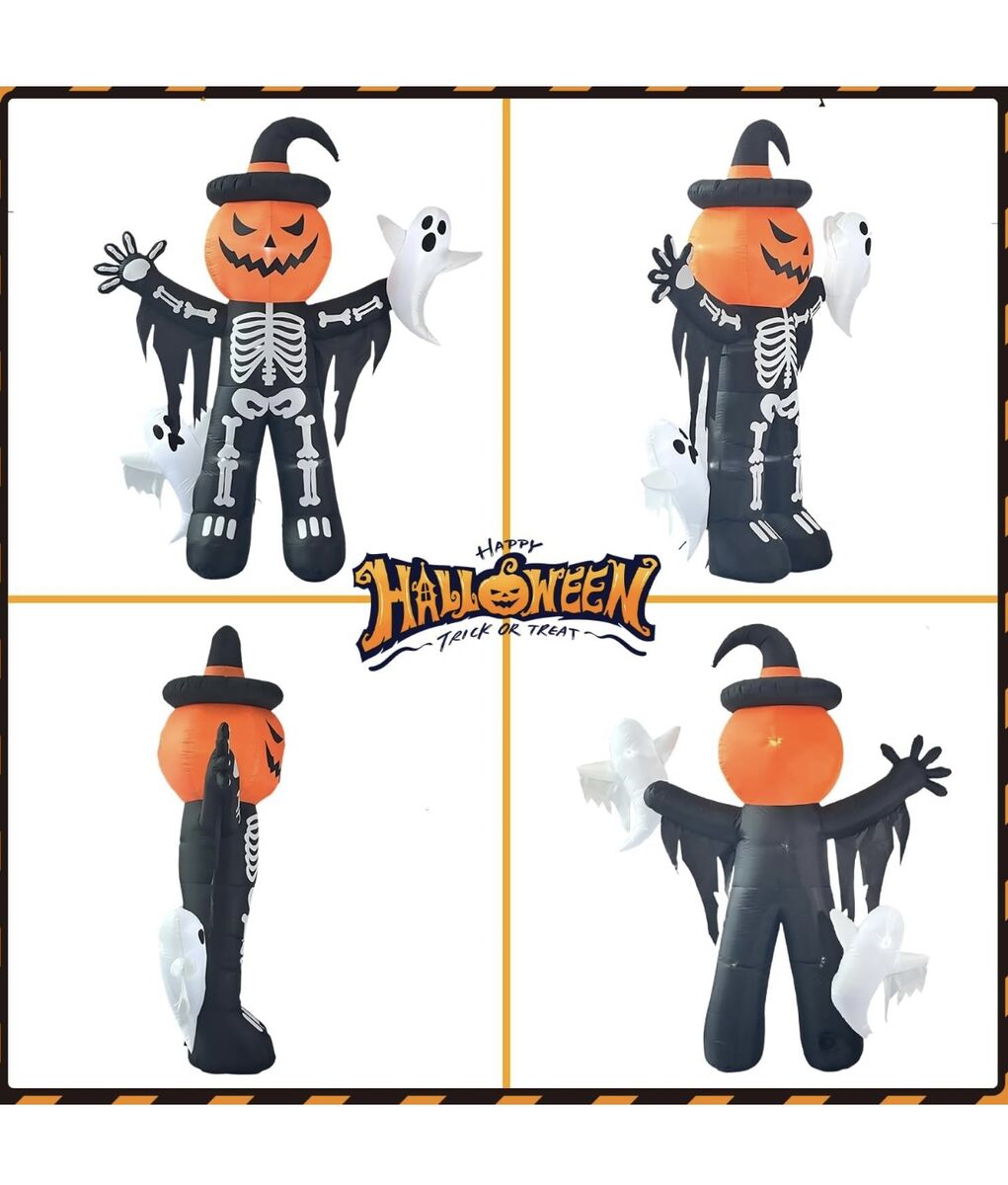 CashAppHalloween 8' Skeleton Ghost Trick Or treat Inflatable Blow Up Pumpkin Home Decor Decoration Yard Prop