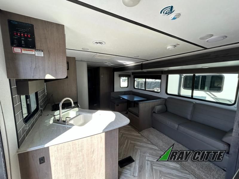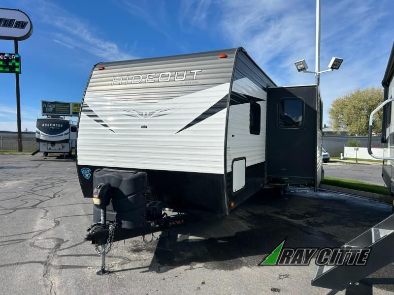 For any trip, whether near or far, you will want a Hideout fifth wheel, travel trailer, destination trailer, or toy hauler by Keystone RV. These models are lightweight which makes them easy to hook up and tow. Just load up your belongings and head out for a weekend away in your own Hideout retreat. A few key features inside of each model include: blackout night shades, a central vacuum, and a Furrion Bluetooth radio, and the exterior is just as accommodating with its blue LED-lighted exterior speakers, fully walkable roof, Tru-fit™ slide construction, and the power awning. Don't wait any longer to enjoy your own private hideout with the Keystone Hideout!