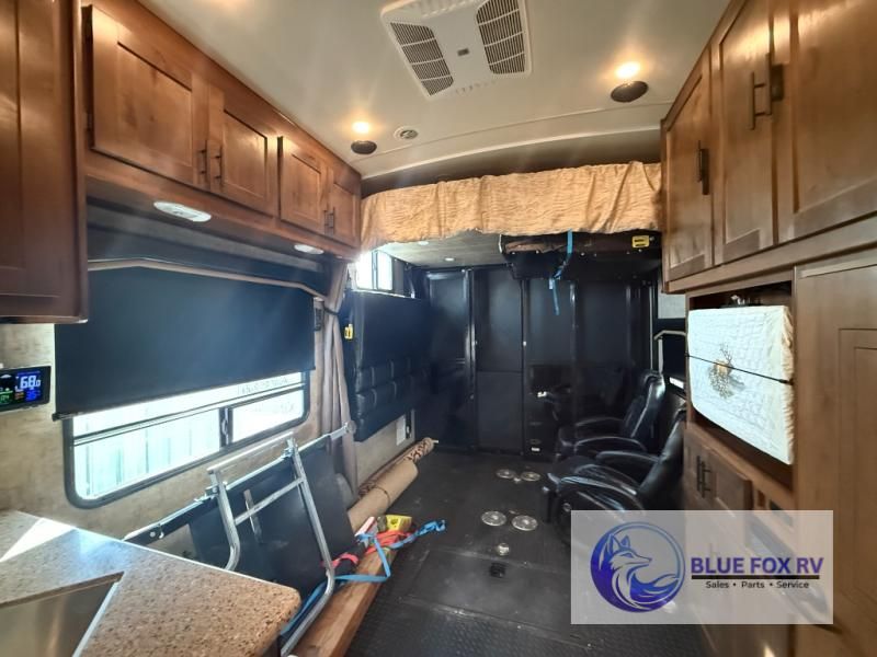Your search is over because this Trail Series MTN TRX toy hauler has everything you will need for interior comforts and storage for your off-road toys with the 10' 10" cargo space. Don't worry about keeping the electronics ready for photos or text messages because the triple charge station and USB ports will do the job. When you want to relax and eat inside, you will have two lounge chairs as well as two sofas and tables to choose from. You might even like to watch the big game on the 32" LED HDTV in the living area. You will find several more features and a few options to make this the perfect toy hauler for you and your family!