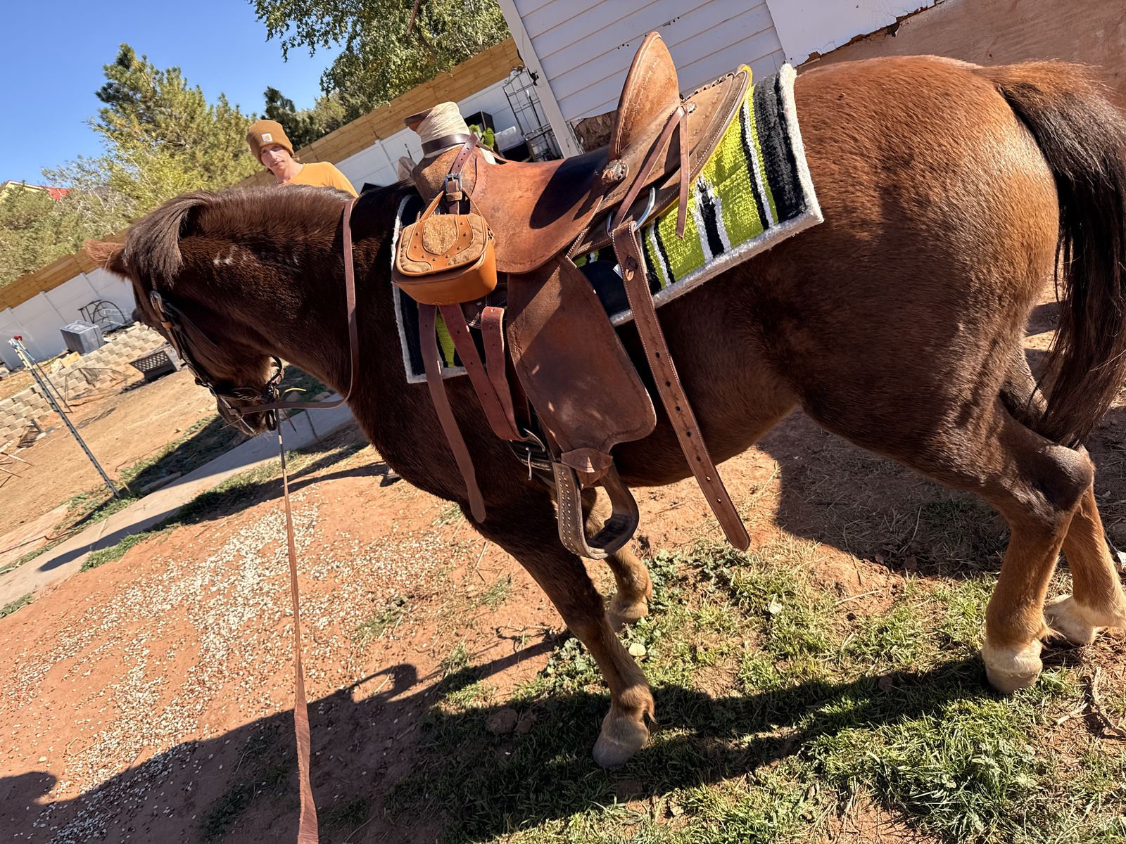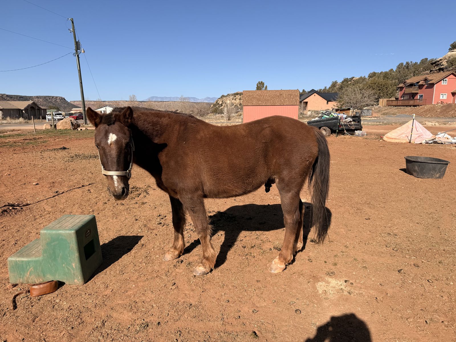 This is Montana, I’ve owned him for a little over a year and he just turned 11. He’s a Pine Nut Valley BLM Mustang and is gelded, he’s an extremely easy keeper and could stay fat off of air . He’s barefoot and just got a hoof trim and also just got dewormed and his teeth floated. He’s 14hh and he’s broke to ride but needs some fine tuning as he doesn’t love turning right. He prefers men over women which is my reason for selling as he is not the biggest fan of me and my husband is too tall for him. He can go in the trails all day and I started him on barrels for fun and he seems pretty decent at it. I’ve put kids of all ages on him but I wouldn’t call him kid safe as he still has some days where he is more watchy. He’s never offered to buck or bolt but he can be an anxious wreck if his rider isn’t confident. I’m asking $2200 obo. Located in Apple Valley