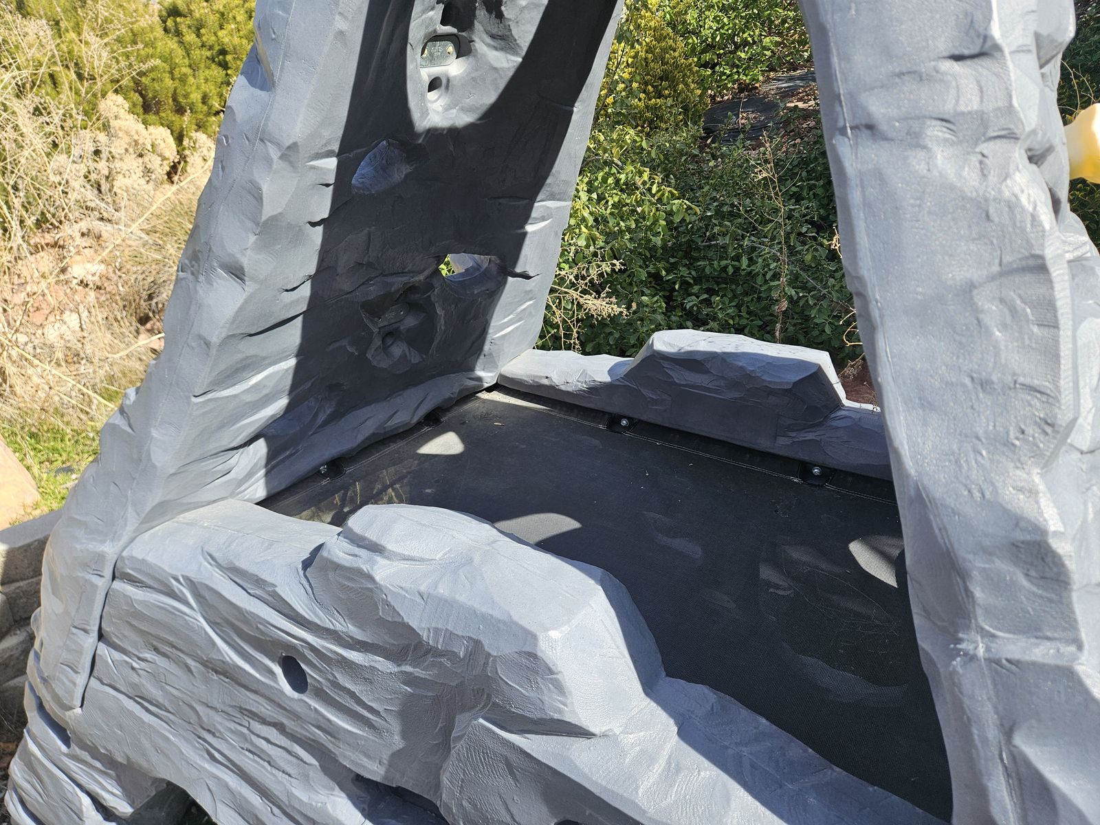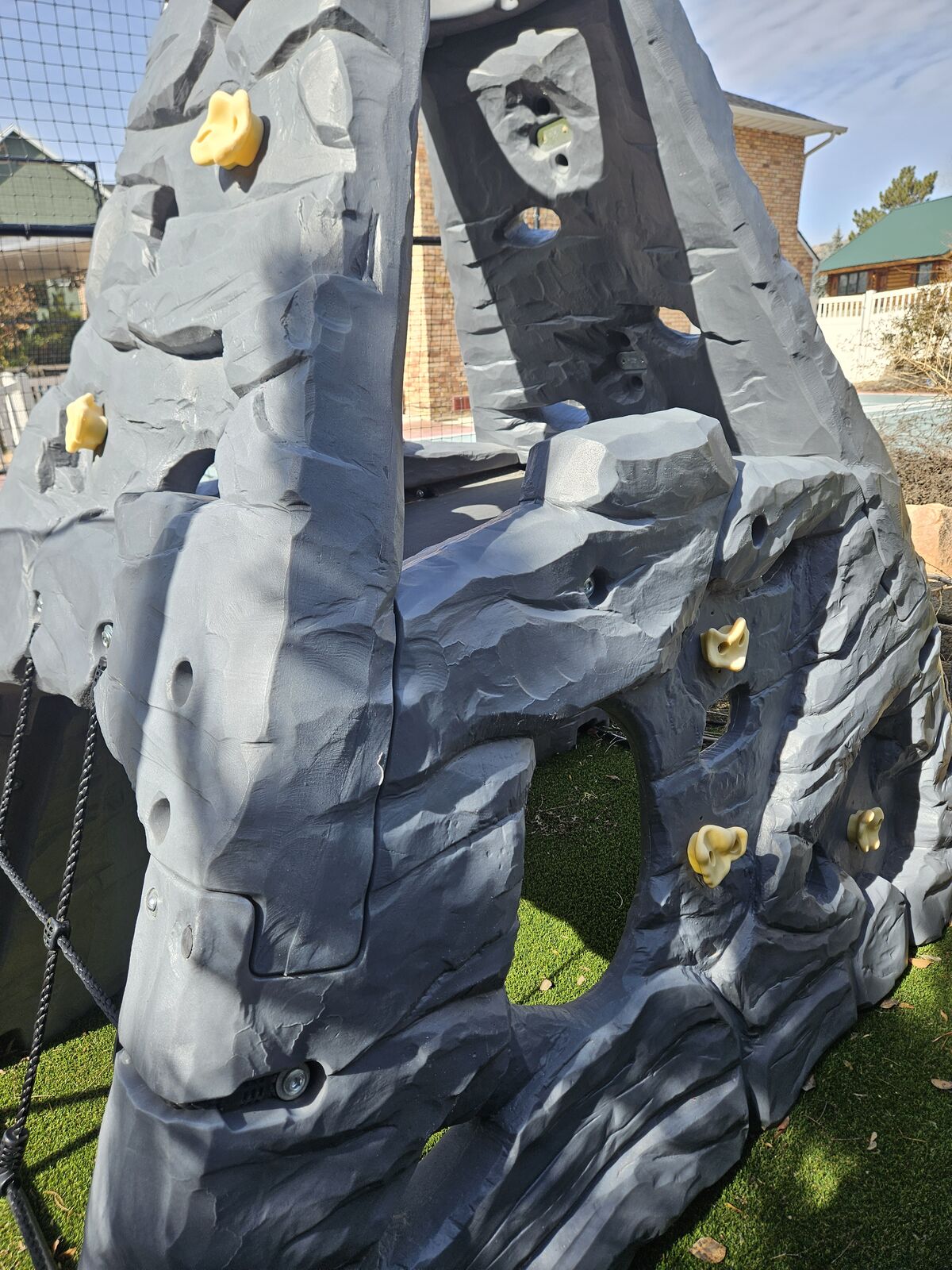 This is in excellent condition. 6 1/ 2 feet tall and climbing on four sides. Also has a net in the middle for hanging out, hiding, crawling through, or whatever. And an open space below.