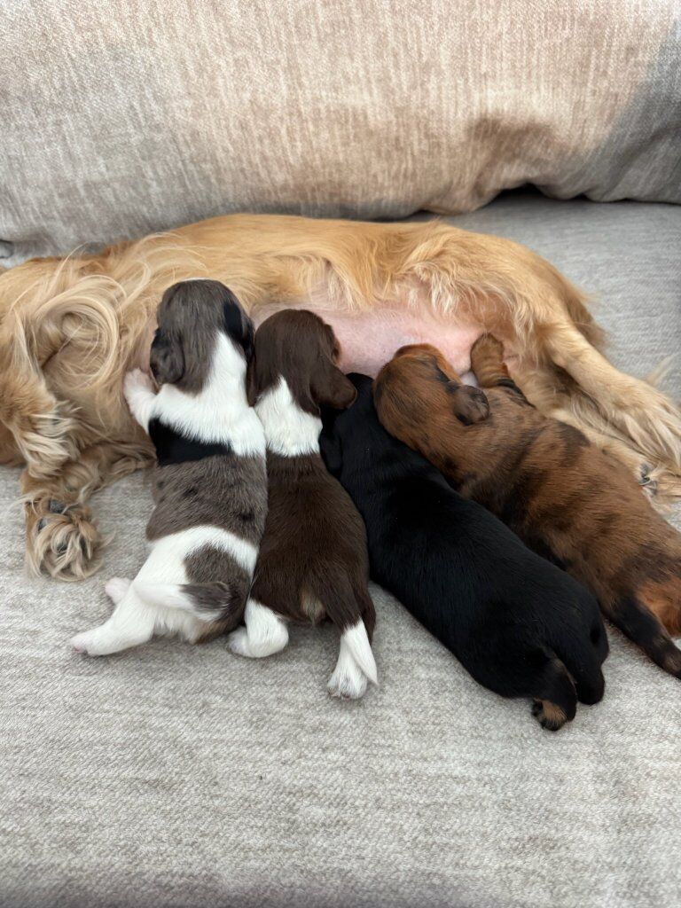 VenmoMeet Goose, a very handsome black and tan dapple long hair 1 year old mini dachshund (11 lbs) looking for a date! He’s an adventurous little guy that enjoys camping, fishing, hanging out with his farm friends, and playing with his best buddy a 3 year old cowboy! Hes got an amazing temperament, hes very good with all animals and kids!! He is AKC registered and has had testing done through Wisdom and through Embark, all came back clear! We are offering him via AI only, (Artificial insemination). All the AI's that I have seen go very smooth and easy, we take care of my dog and yours, the whole process only take about 30 minutes or less! This is to protect Goose, and your female as well. The breeder that he came from helps and handles the AI, there will be 2 AI offered, if you’d like more it’s an additional $50 per. (Comments from the breeder: We like to do the first AI on day 9 but if you're not sure of your females cycle day, we can do one on day 8. It is better to be early than late. I am very experienced with AI, I've been breeding for 17 years.) She is located in west haven, we will plan a day and time for you to bring your female to her and I will also meet there with him. (You can meet him prior if needed) He has been proven and makes stunning puppies!! I also took him in for a semen analysis and all looks fantastic.