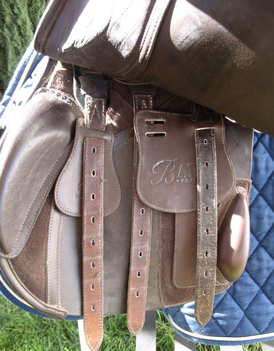 PayPalUsed Bates All Leather All-Purpose English Saddle 16.5 with CAIR and complete gullet plate exchange kit. Rides more like a 17" seat. Very good condition. Includes upgraded thigh blocks. Cotton saddle pad included. (No texts please) Shipping available at cost.