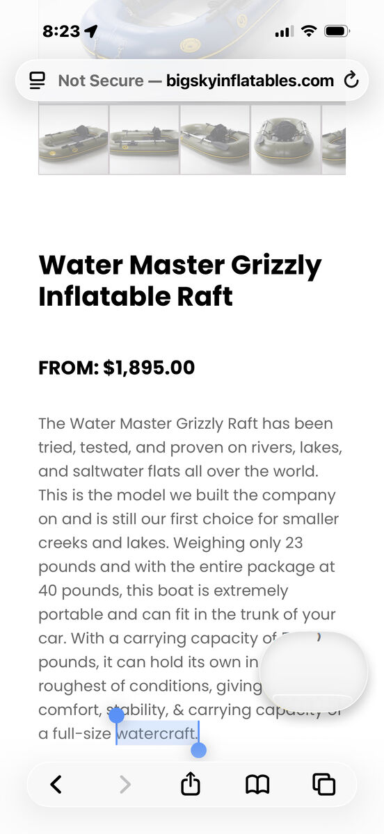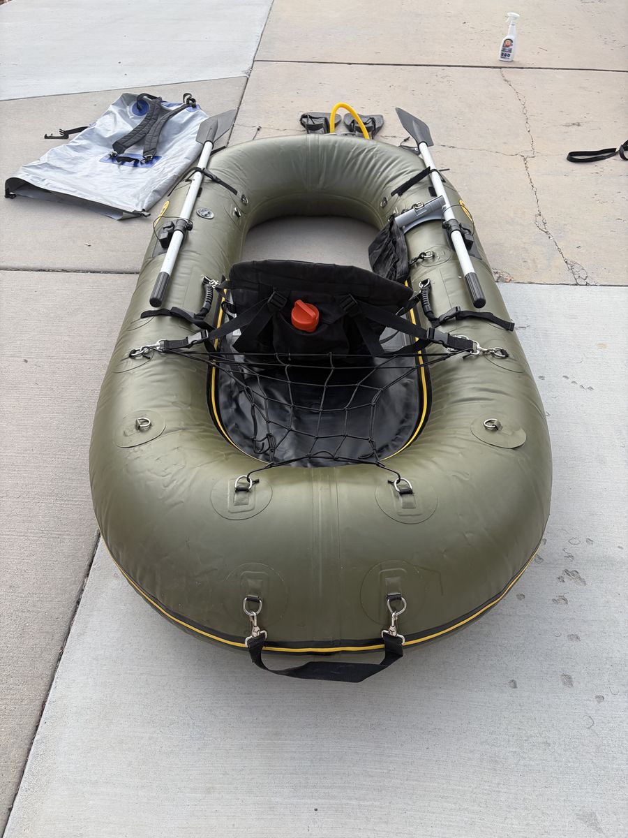 VenmoWatermaster Grizzly, lightly used. Watermaster, Big Sky Inflatables, from Montana, has been the gold standard of personal fishing, frameless watercraft for decades. Bombproof PVC construction, ability to use with fins, oars, or both at once, roll the entire craft, and place all the accessories into one large packable dry bag, make The Watermaster one of the most versatile and reliable fishing craft available. This boat is lightly used, about 5-years old, comes with many upgrades including, side storage pouch, rear cargo net, fins, stripping apron, upgraded carry handles, pump, dry bag, backpack, repair kit, oars. Access fishing water that no larger rafts, hardside boats, or many wade fishermen can access with this craft. You can put this boat on your back, hike upriver or into lakes, unroll it out of the pack, inflate it, and have a COMMERCIAL GRADE, pvc raft to float downriver in. I’m 220lbs, and have floated many rivers in the west with gear on the storage platform behind the rowers seat, with confidence. Base price new for these is $1895. Selling for $1200. Cash, Venmo, local pickup around Salt Lake preferred. Shipping would have to be calculated.