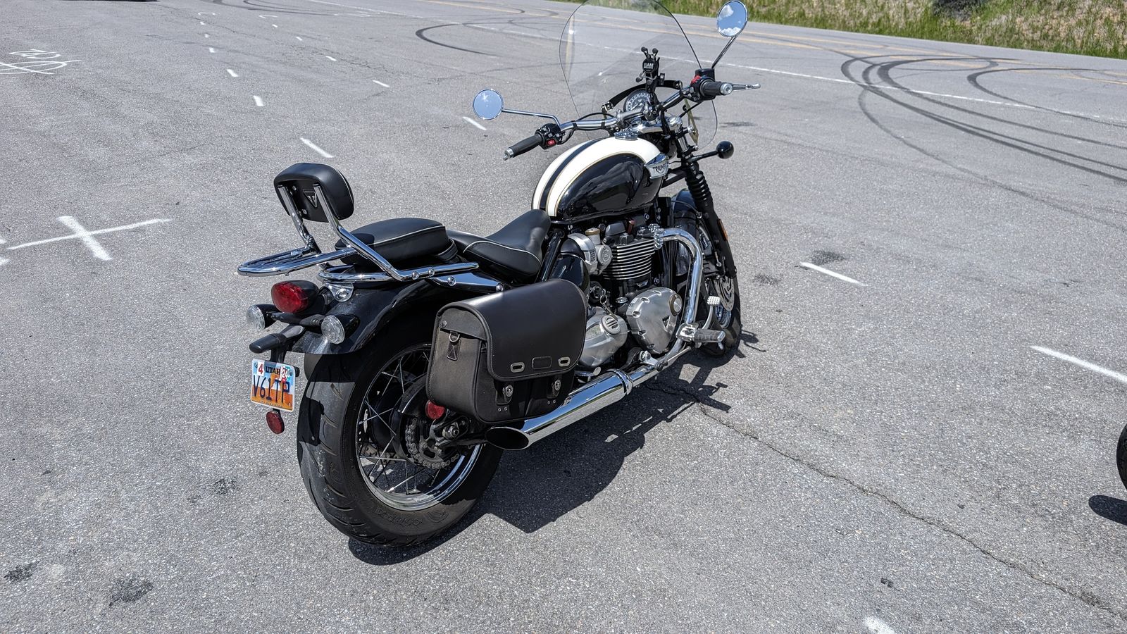 Zelle2018 Bonneville Speedmaster with upgraded seat, leather saddlebags, 4.3K miles.
