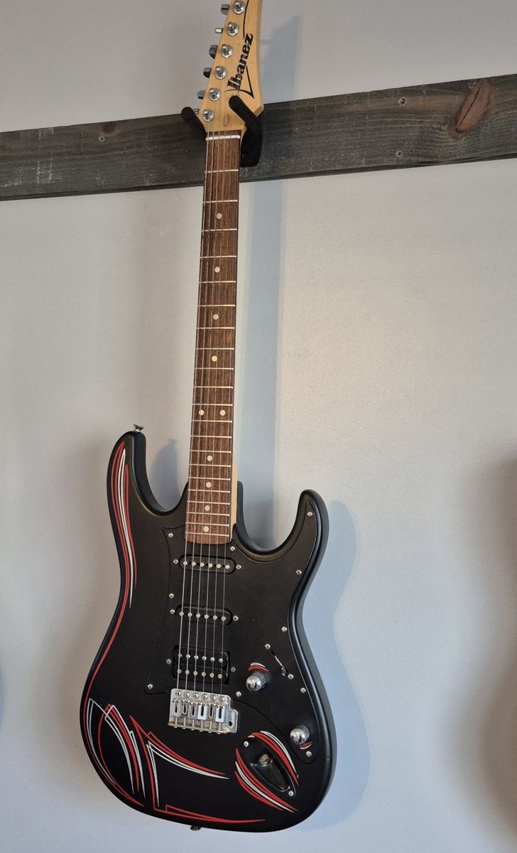 VenmoVery cool guitar, flat black and hand pinstriped. Plays really well