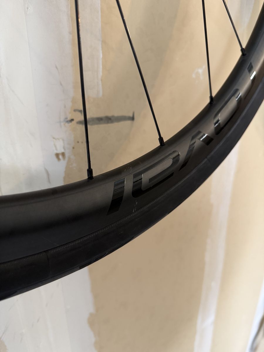 These are an awesome lightweight option, just a joy to climb on. Per the manufacturer, total claimed weight of 1,248 grams (562g front, 686g rear). Some small scuffs here and there (see pictures), but overall great used condition. One scratch on the rear wheel was filled in with a clear coat out of an abundance of caution, but was inspected by two bike shops and confirmed to just be cosmetic.