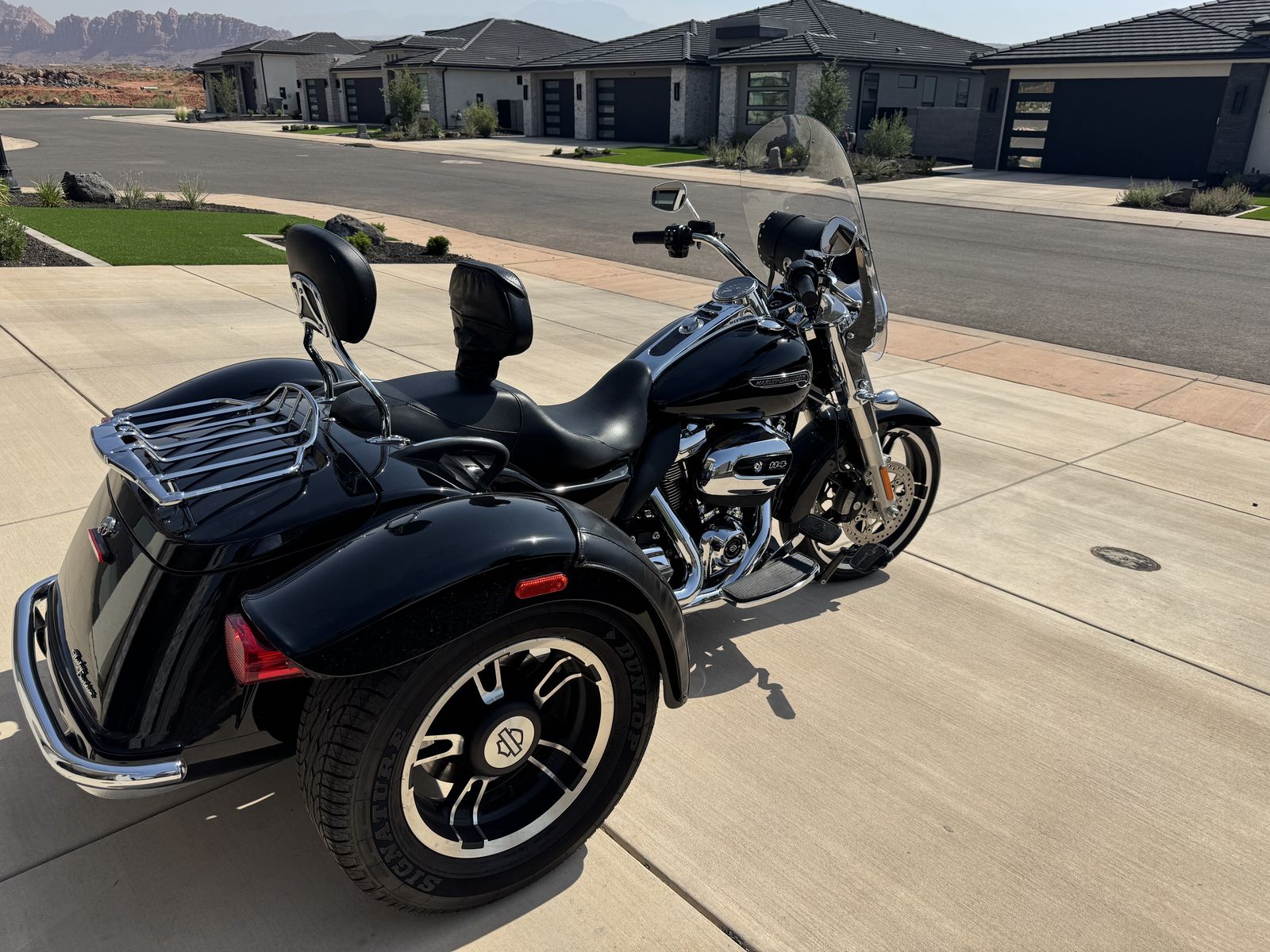 ZelleThis Harley Trike is in excellent condition. Included is Driver Backrest, Passenger Backrest, Custom Highway Pegs, Fender Covers, Windshield Bag and Truck and cargo carrier.