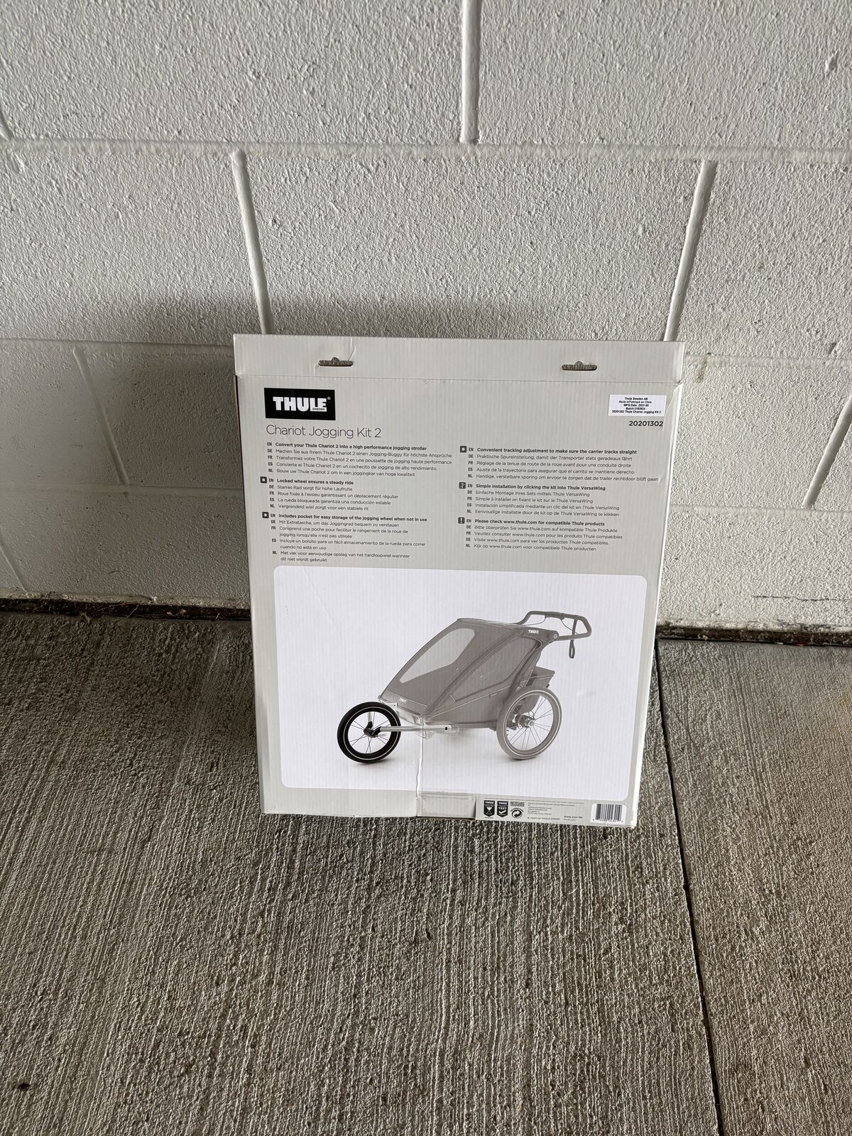ApplePay2 person Thule multi-sport kids trailer. I have never opened it. It comes with a stroller and bike kit out of the box and I have included the jogging kit. (There is a ski kit you can purchase for it). It has suspension, a storage area, rain and mesh covers and folds down to make it easy to transport and store when not in use.