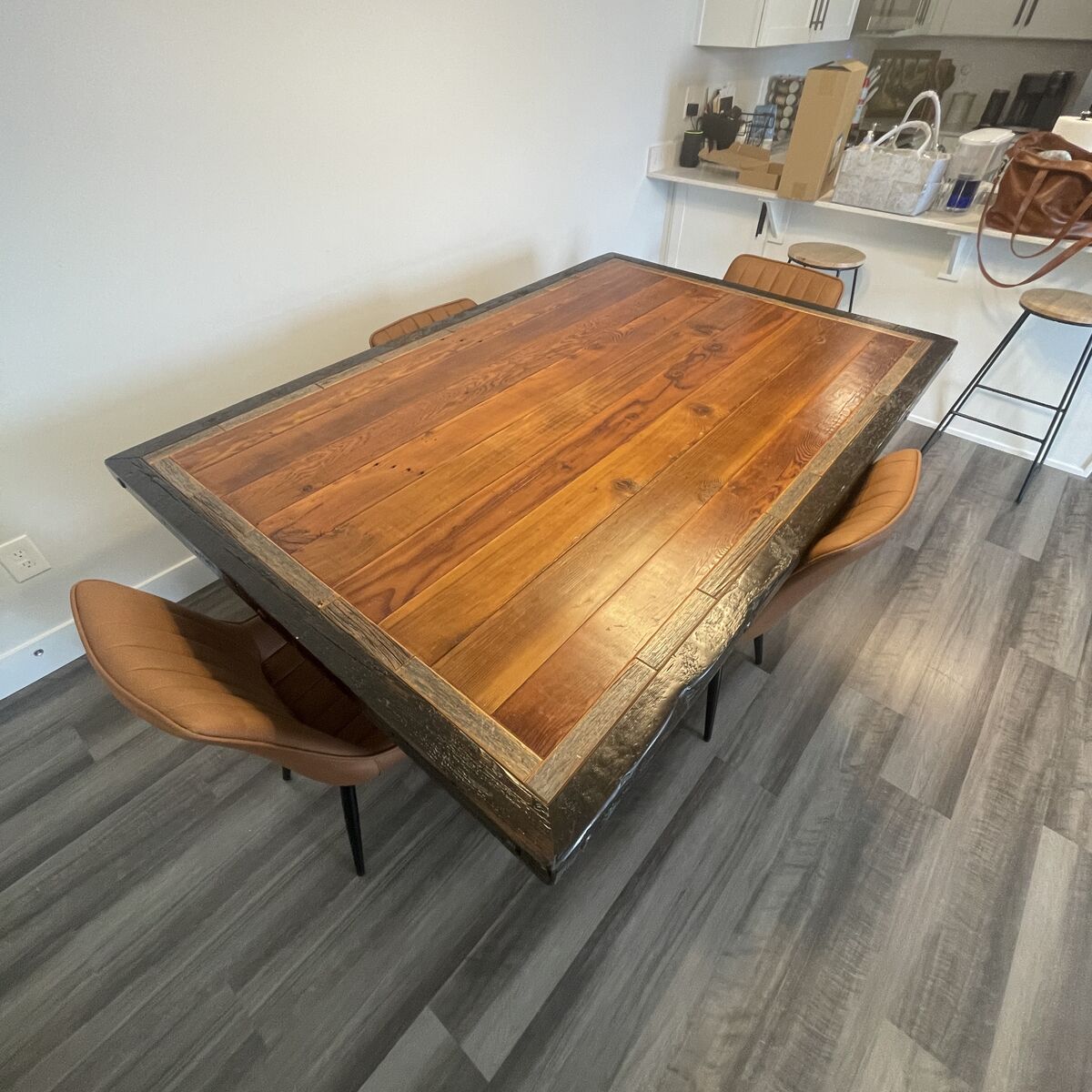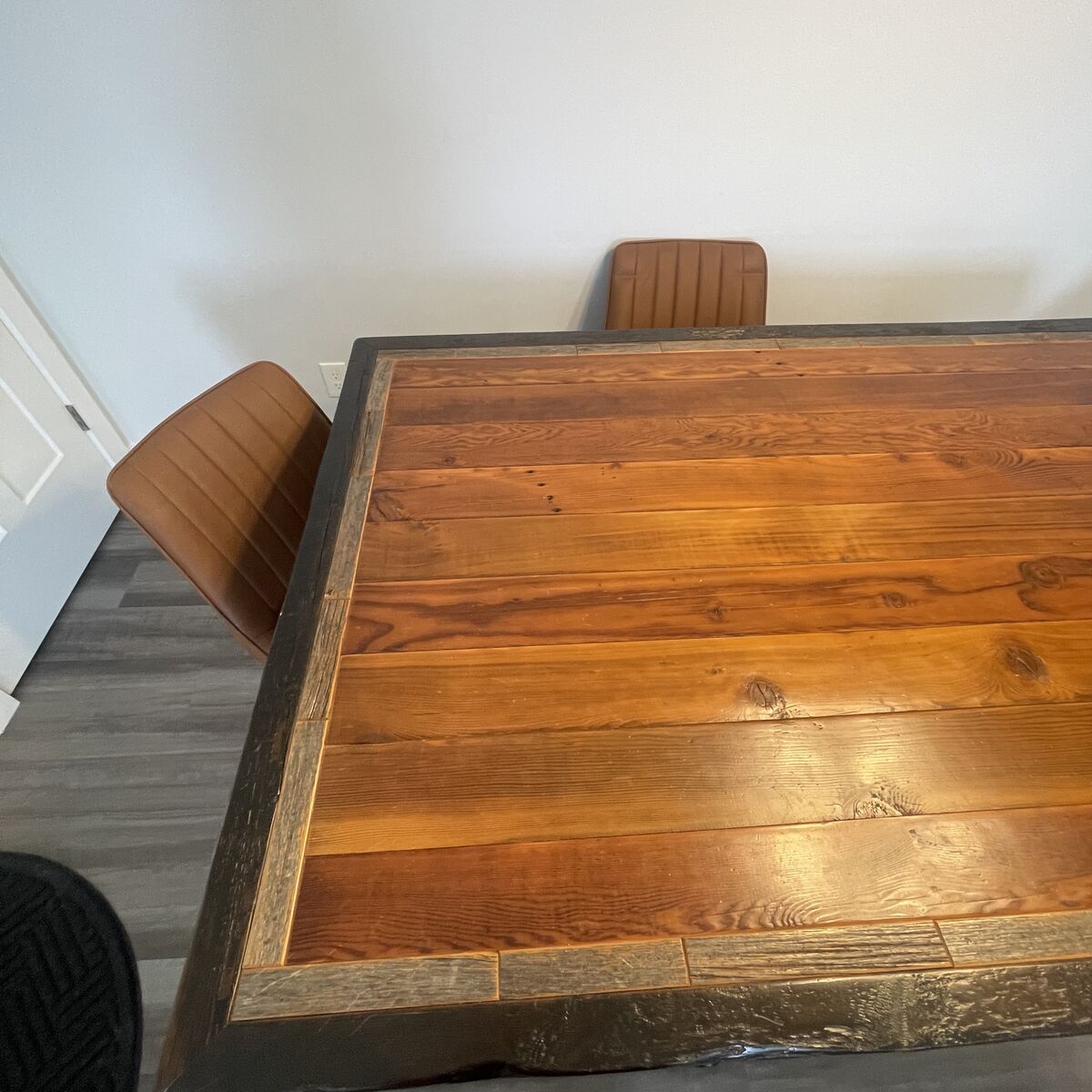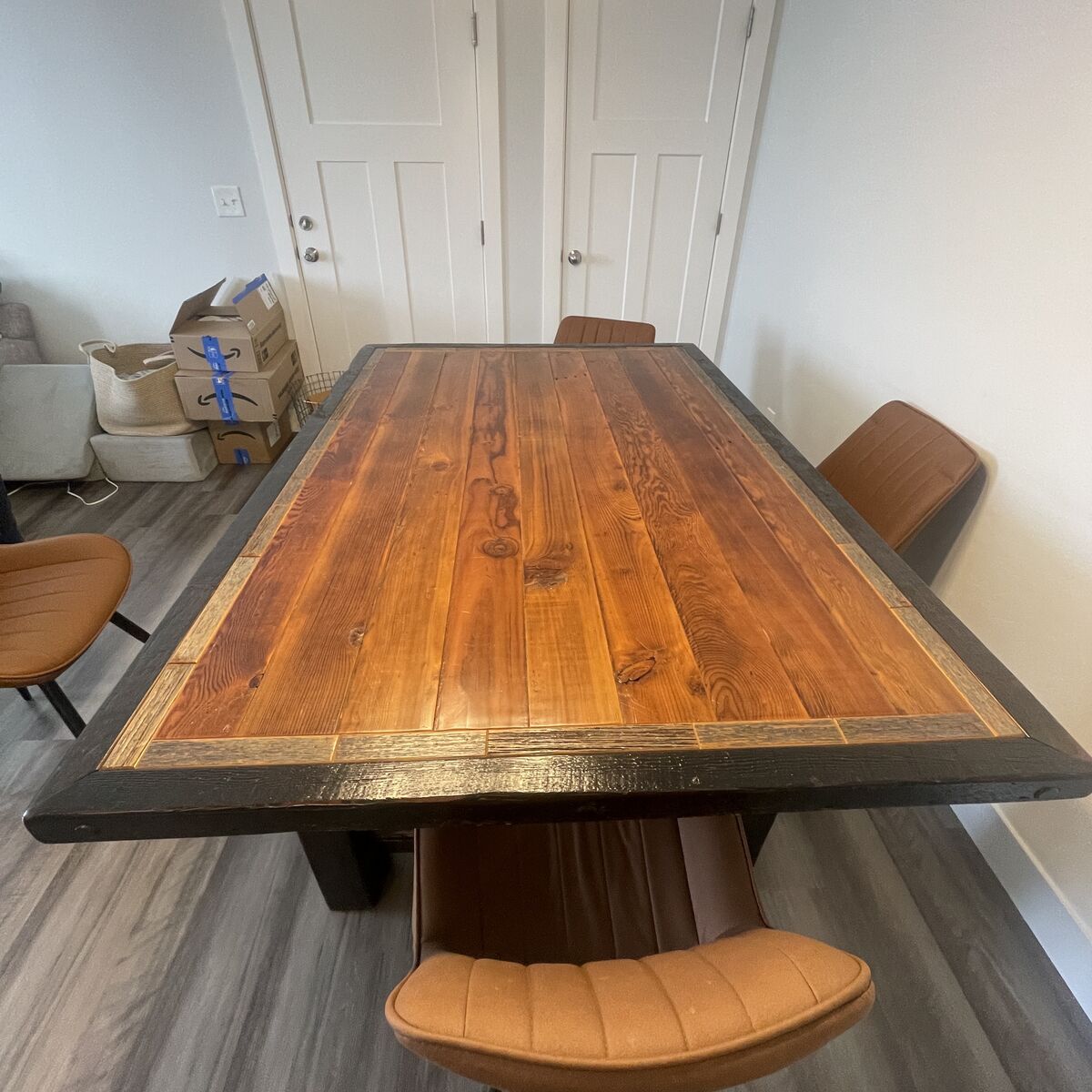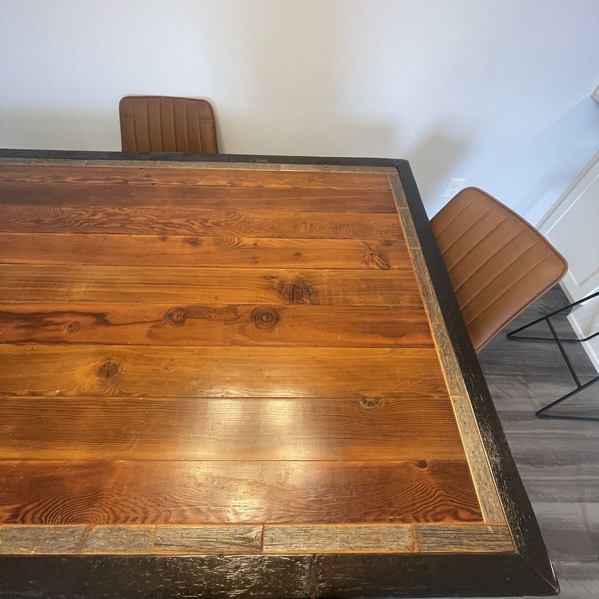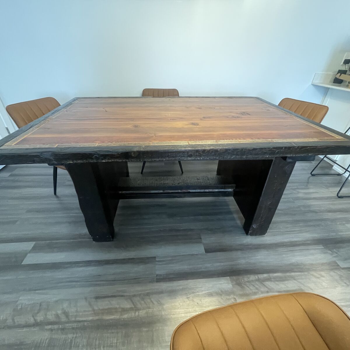 Large reclaimed barnwood table. In great condition and super heavy. Does not come with the chairs, but I am more than happy to sell them separately. Text only! Please don’t call. I do live in a condo, so you would need to move it down stairs and I cannot help.