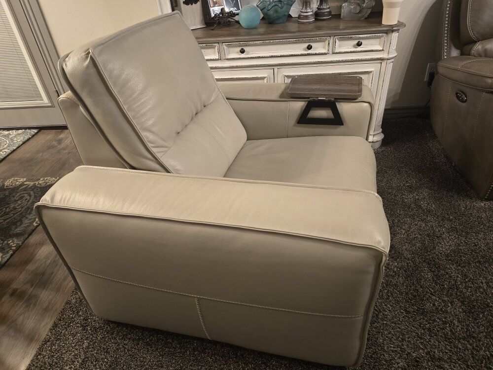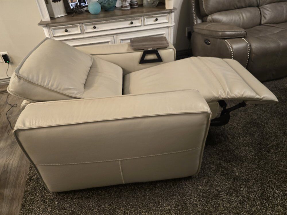 Beautiful Modern Reclining Leather Chair. Barely used. See pics for color, style and like new condition. Thx