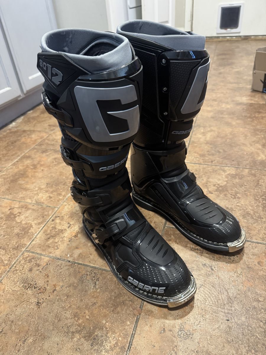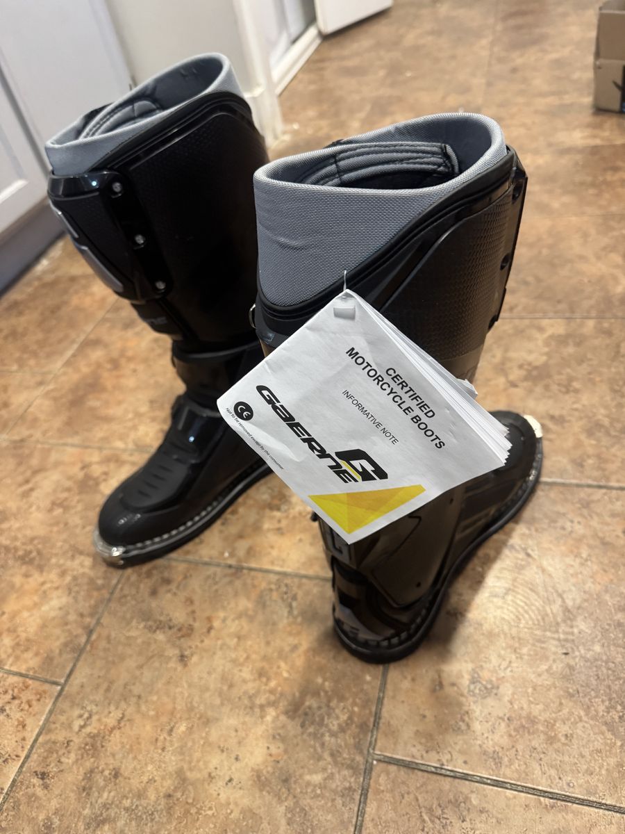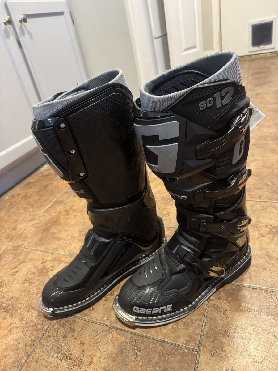 ApplePayBrand new Sg-12 boots black and gray size 9.5 US men’s size 44 EU men’s. MISSING INSOLES but they are cheap. Brand new never worn with tags still on them. Willing to trade for size 11 alpinestars tech7 or tech 10 straight across or willing to trade for other moto gear, honestly open to any trades but would like cash preferably. These boots range from 400-560$ brand new asking 325$. Definitely open to trades but I do not want your garbage. Thanks