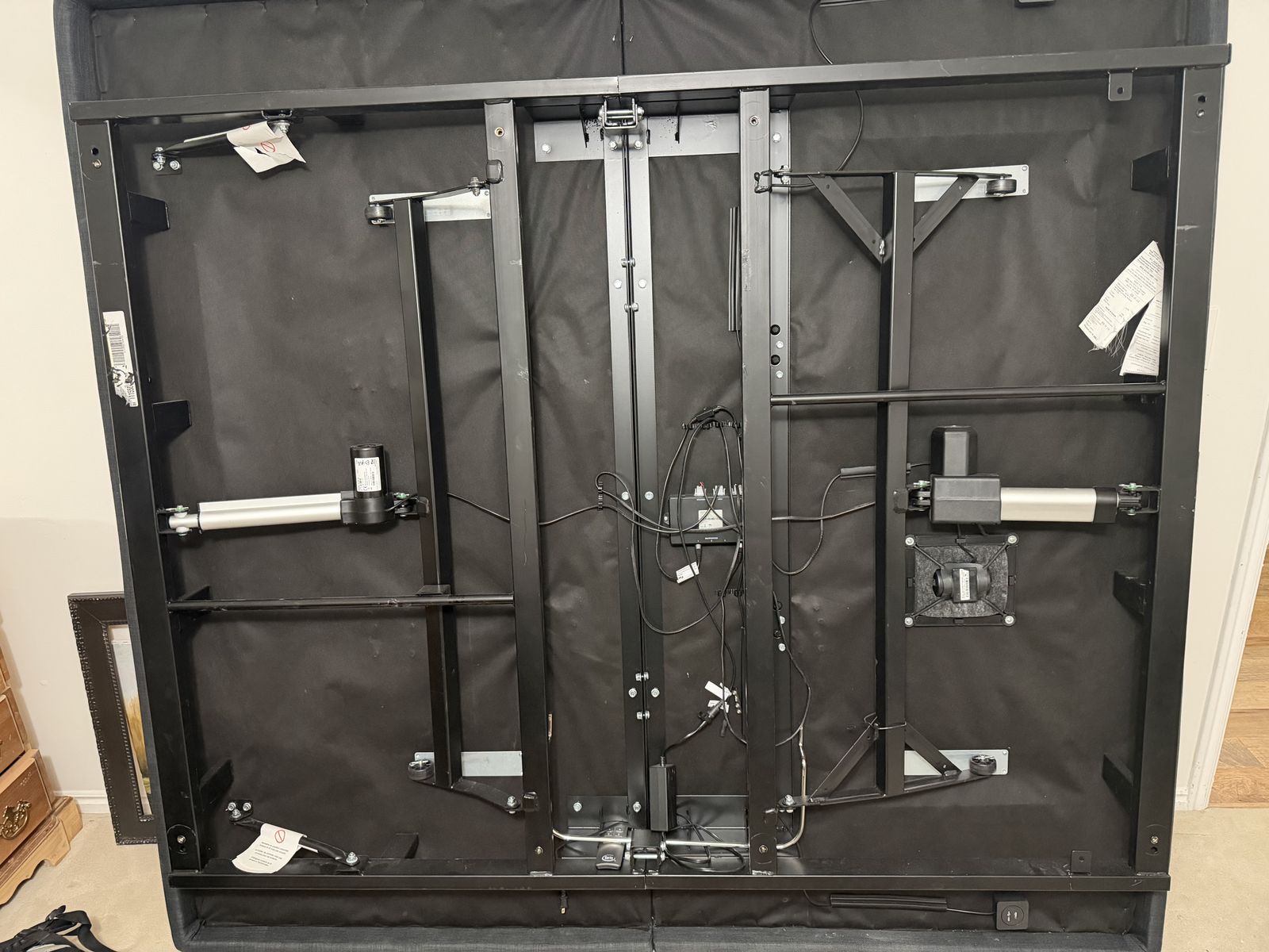 VenmoSerta king size adjustable base for sale. It is in great condition. It has no issues. Adjusts both head and knees. Has a massage capability. Has 2 USB charging ports, one on each side. Has 8 locations for screwing legs on but there are no legs. You would need to provide legs if you don't have a platform to put it on. It is rather heavy so it will require at least 2 people to move it.